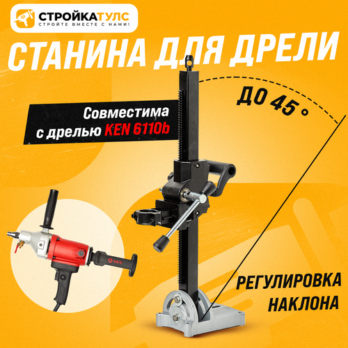 Станина для дрели алмазного бурения, работает с моделью Ken6110b, с размером хомута для установки дрели 43-58 мм, что позволяет выполнять работы с высокой точностью и гибкостью.
