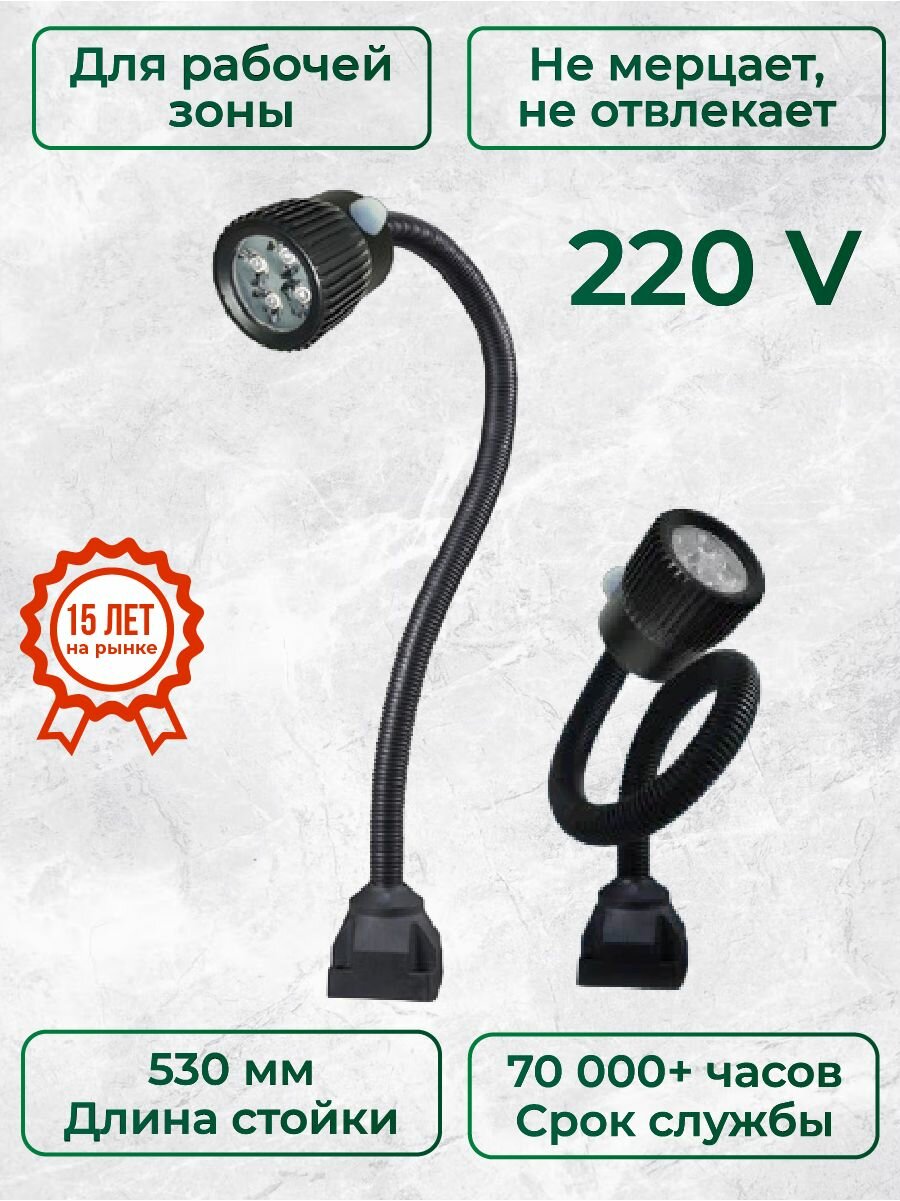 Особенности Cветодиодный светильник FABTEC LED F3 (220v) используется для освещения рабочих зон различного оборудования и станков; От светильников FABTEC не устают глаза, они не мерцают и не отвлекают от работы; Несмотря на хороший свет в цеху, конкретно в рабочей зоне должно быть отдельное освещение; Забудьте о концентрических окружностях - светильники FABTEC дают равномерное пятно; Корпус лампы пыленепроницаемый и устойчив к маслам. Гибкая основа светильника поворачивается на 360°; Степень защиты (IP) 67 Рабочая температура, °С <60 ° Параметры подключения Электропитание, 220/50 В/Гц Потребляемая мощность, 0.005 кВт Дополнительные параметры Длина гибкой стойки, 530 мм Срок службы, 70 000 ч