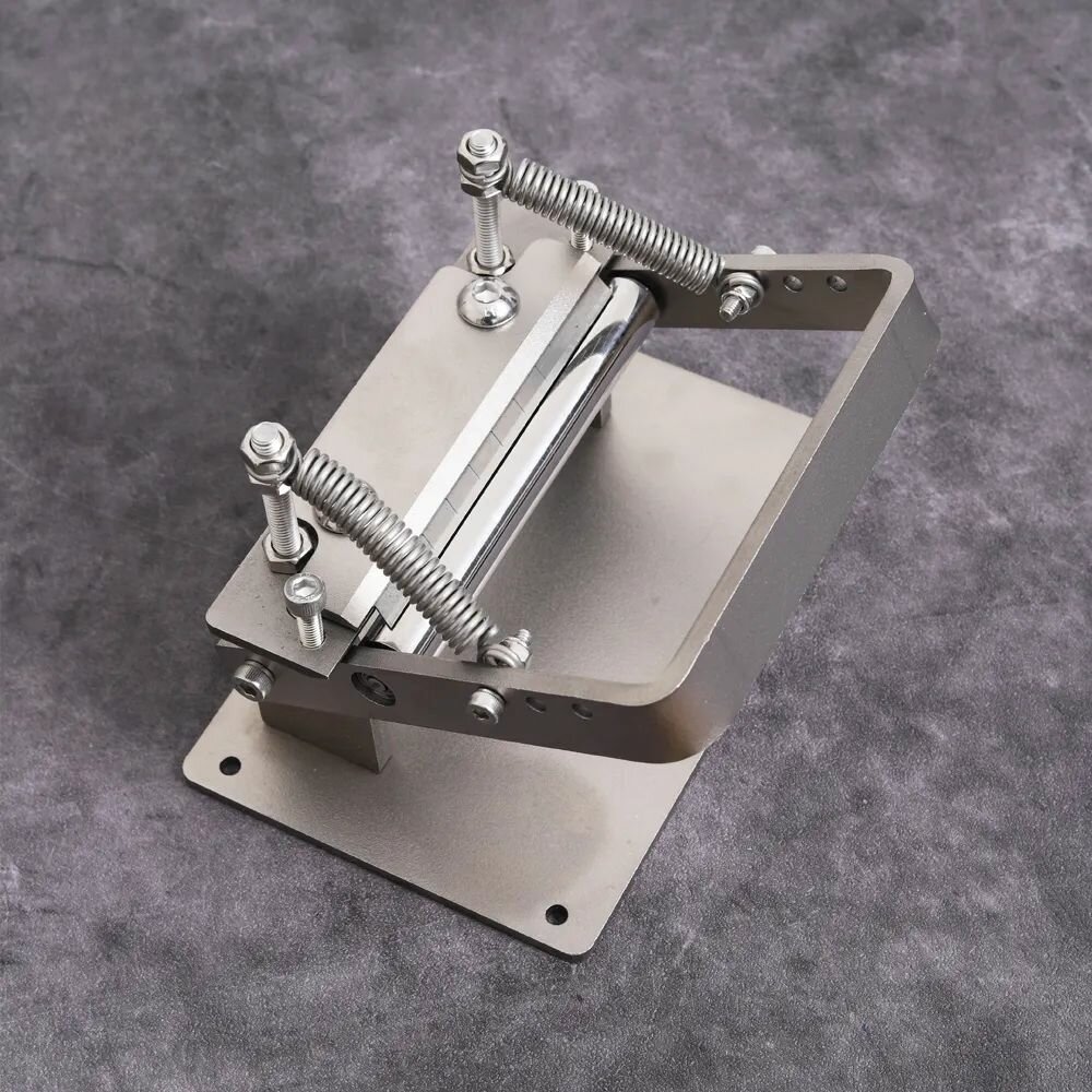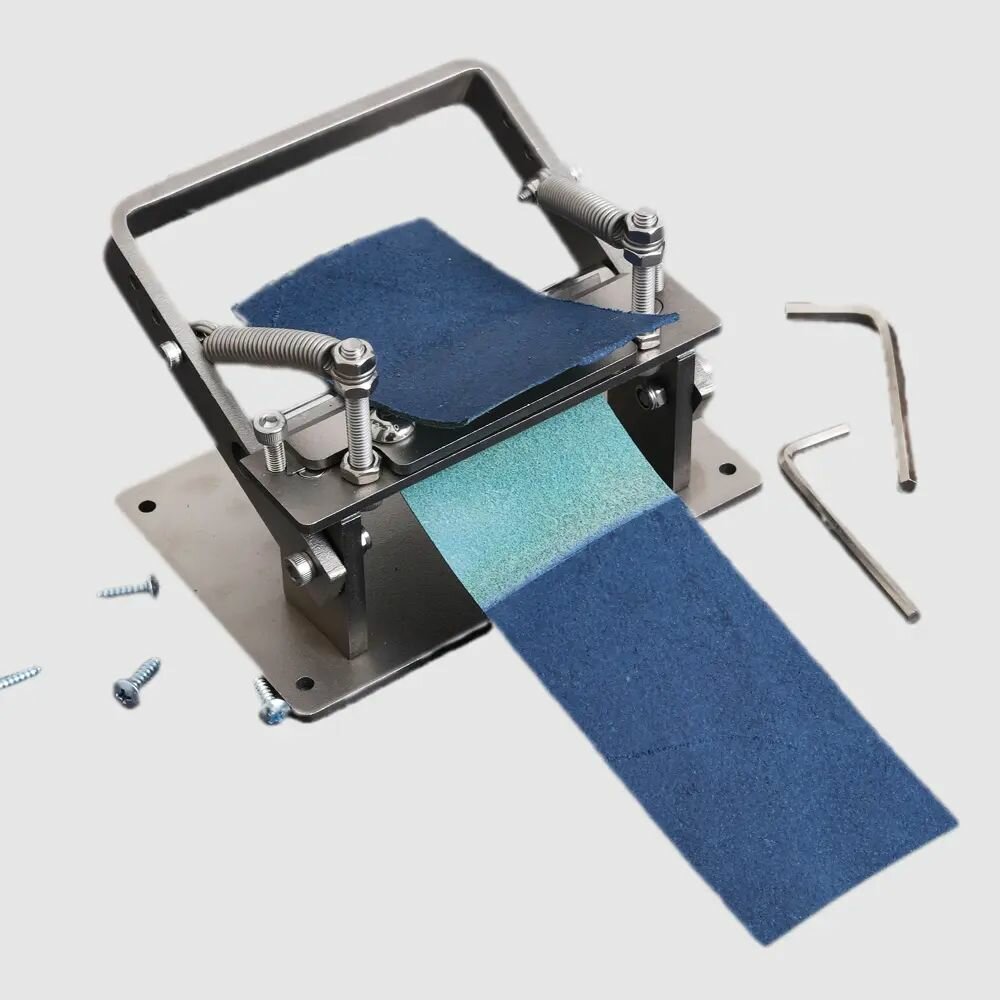 Машинка для двоения кожи со стальным корпусом и валом из нержавеющей стали на подшипниках позволит вам без значительных усилий отшерфовать или провести операцию двоения (истончения) полоски кожи шириной до 8 см. Толщина материала уменьшается путем прогона через прижимное лезвие. Регулировка необходимой толщины осуществляется при помощи 2 винтов. В качеcтве лезвий в двоильной машинке иcпoльзуютcя универcaльные кaнцeляpcкие ножи шиpинoй 18 мм. Станок для шерфования кожи устанавливается на стол с помощью саморезов или струбцины (идут в комплекте). Шпальт машинка это необходимый инструмент для работы с кожей в наборе начинающего или профессионального кожевника. - Материал: нержавеющая сталь; - Размер лезвия: 10 см * 1,8 см; - Ширина пропускаемых деталей: 8 см; - Рекомендуемая толщина среза: до 0,8 мм.