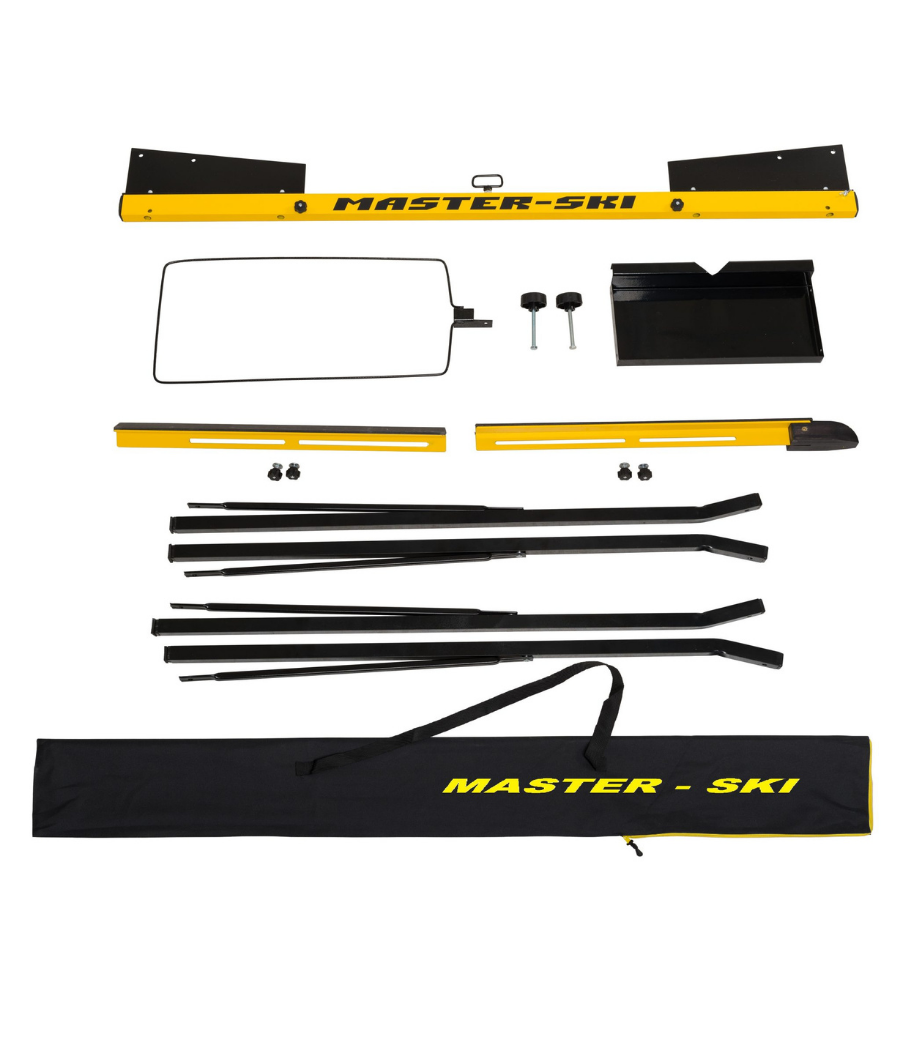 В комплект станка входит: — Станина (профиль 40х20мм) с упорами для лыжи (вес – 2,0кг); — Ножки опорные для станка – 2шт. (вес – 1,5кг); — Чехол для упаковки и транспортировки станка в комплекте.