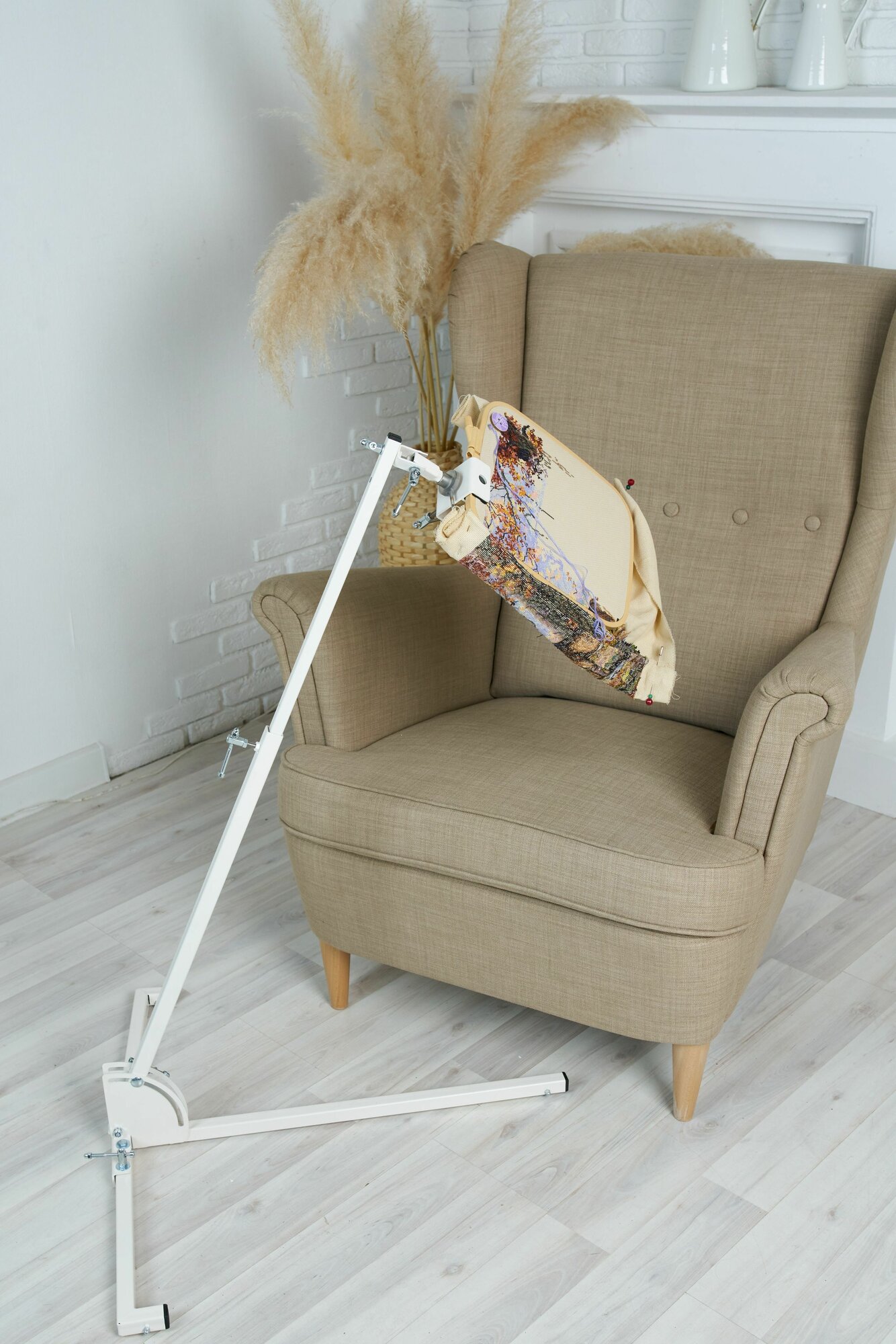 Купить Станок для вышивки напольный с держателем рам и держателем 2 в 1 для пялец и снапов «Амур» молочного цвета. с доставкой по всей России.