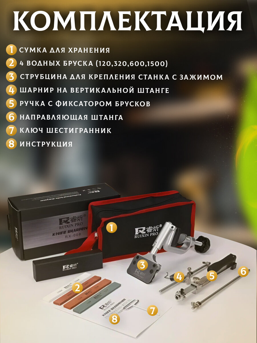 Точилка, которая сделает ваши лезвие Ваших ножей острее и более прочным. С помощью наших точильных камней, которые идут в комплекте, вы сможете профессионально затачивать свои ножи прямо на кухне.