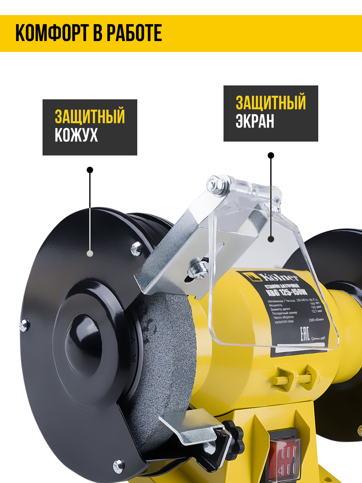 Станок заточной Kolner KBG 125-150W, с упором, асинхронный двигатель, 125мм: сравнение цен, характеристики, фото, актуальное наличие и цены.