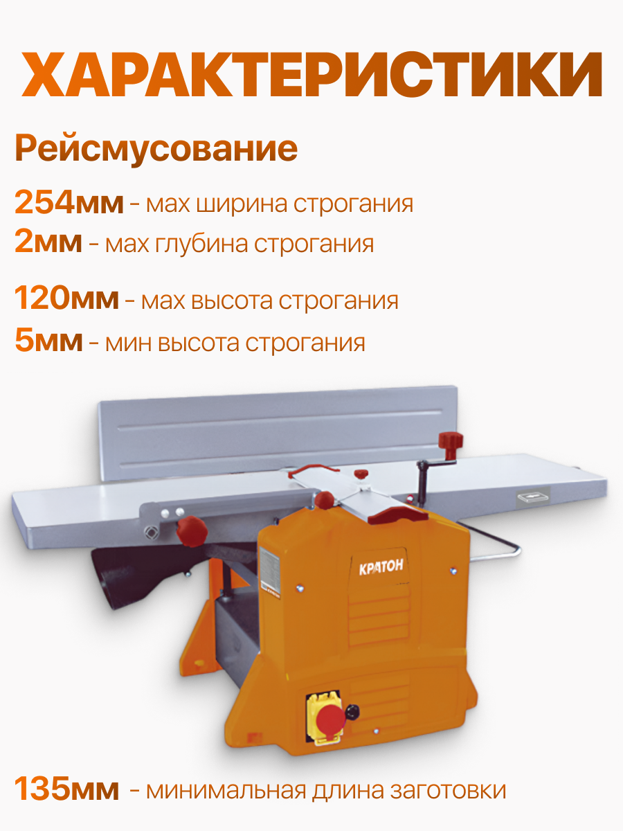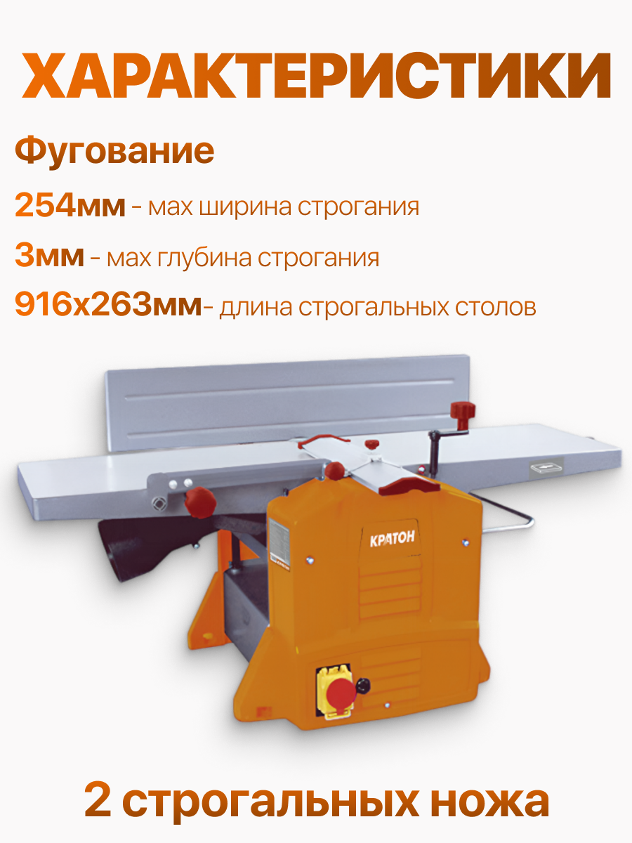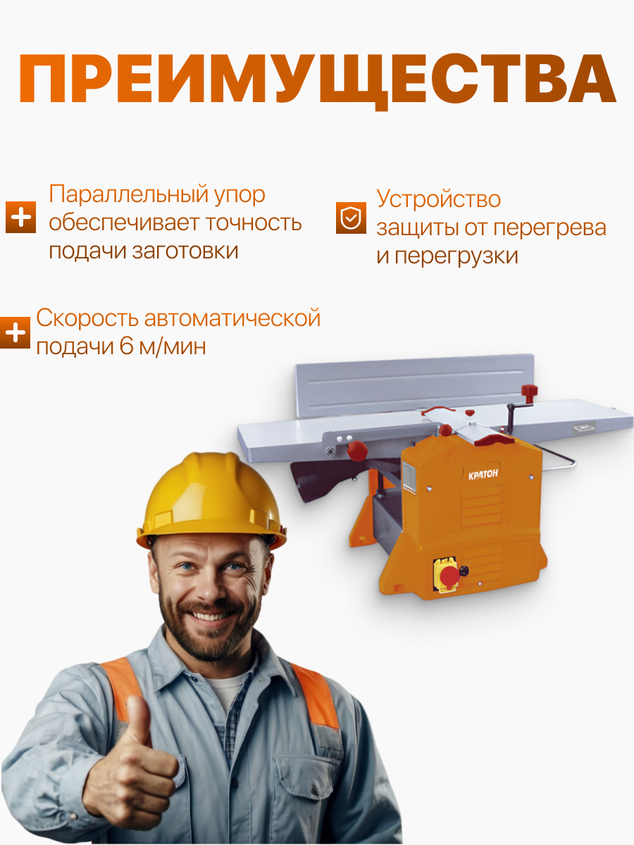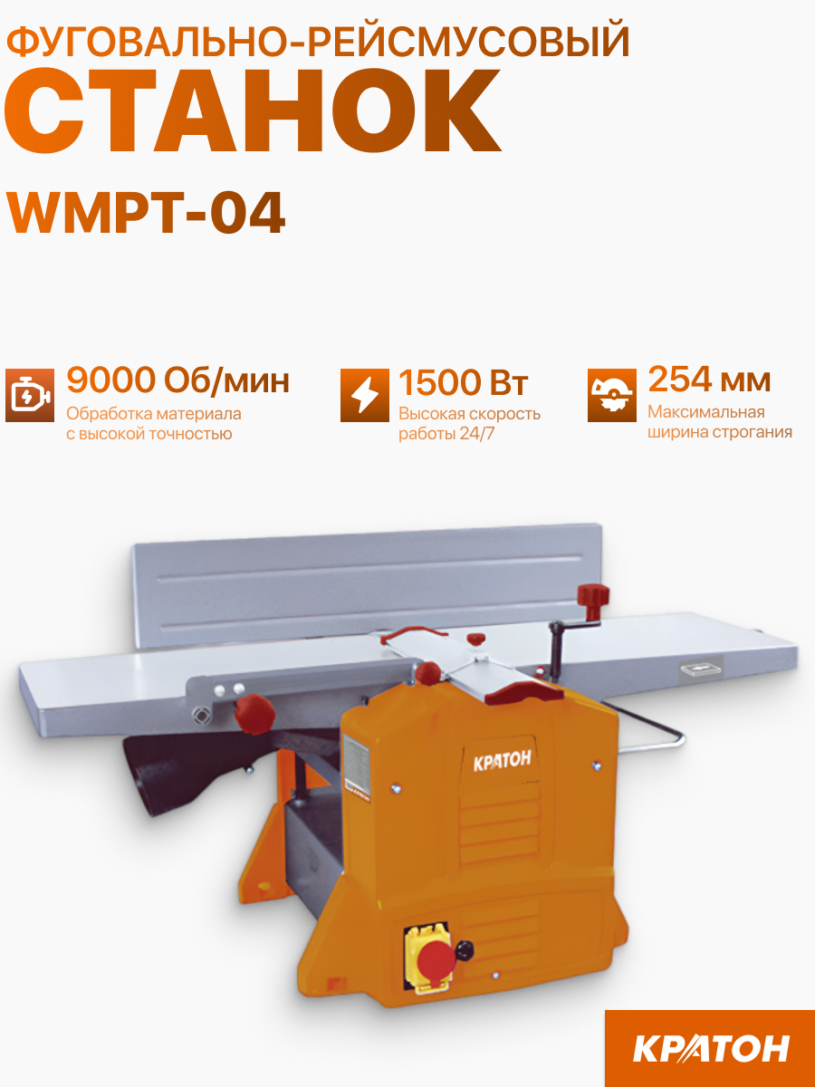 Марка Кратон представляет станок фуговально-рейсмусовый WMPT-04. Предназначен он для работы с деревянными заготовками. На станке производится фугование и рейсмусование. Частота обработки поверхности — высокая. Рабочий стол изготовлен из прочного чугуна и отшлифован для удобства и точности в работе. Мощный коллекторный двигатель защищен от перегрева. Станок оборудован виброгасящими опорами. Для безопасности магнитный пускатель не производит самостоятельный пуск после отключения. Оператор защищен ограждениями и крышками.
