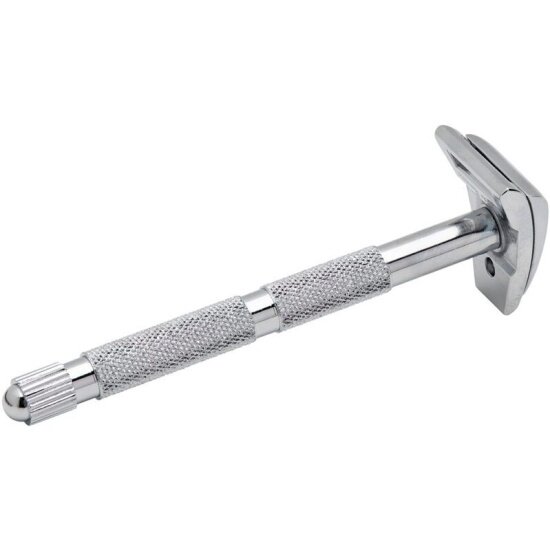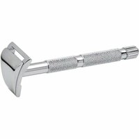 Станок контурный для бритья мужской Merkur Solingen 907000 (907C), глянцевое хромированное покрытие, прямой срез, короткая ручка, лезвие в комплекте 1 штука