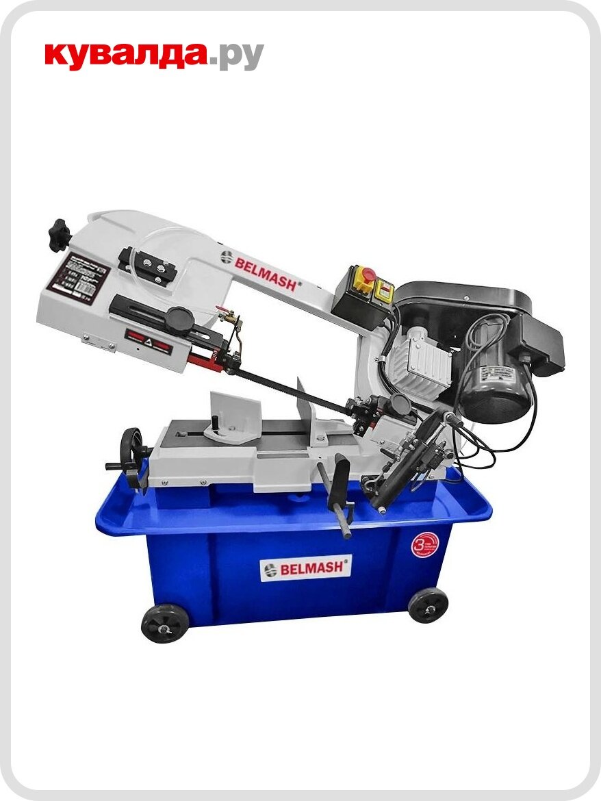 У станка четыре скорости вращения пильного полотна: 22/33/45/65 м/мин. Они переключаются путём перекидывания клинового ремня. Натяжение полотна осуществляется специальной ручкой.