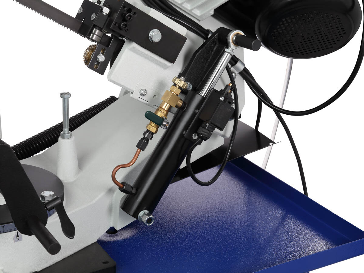 Станок ленточнопильный в сборе 1 Система гидроразгрузки в сборе 1 Колесо 4 Ось 2 Шайба 8 Шплинт 4 Фильтр-сетка 1 Ограничитель длины заготовки в сборе 1 Ножки опорные 2 Комплект крепежа* 1 Пильное полотно 2360×20×0,9 6TP* 1 Руководство по эксплуатации 1 Упаковка 1 *Данная позиция может быть установлена на станок