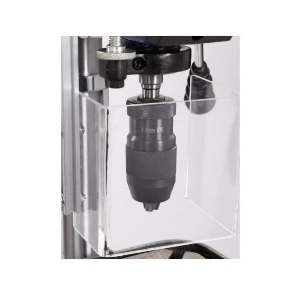 Патрон быстрозажимной с максимальным диаметром зажимаемого хвостовика инструмента 16 мм. Диаметр стойки (колонны) 60 мм, имеется зубчатая рейка, поднятие/опускание стола настраивается с помощью рукоятки.