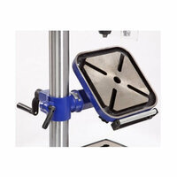 Заготовку можно крепить как к рабочему столу, так и к основанию, все зависит от ее размера. В комплекте предусмотрены тиски. Для их крепления есть четыре паза на рабочем столе и два на основании. Шкала, показывающая ход пиноли шпинделя, расположена слева от панели управления станком, возможно ограничение хода пиноли, путем перемещения стопора по планке. Наконечники тройной рукояти удобной формы, что способствует плавной подаче сверла к заготовке. максимальный ход пиноли шпинделя 90 мм.