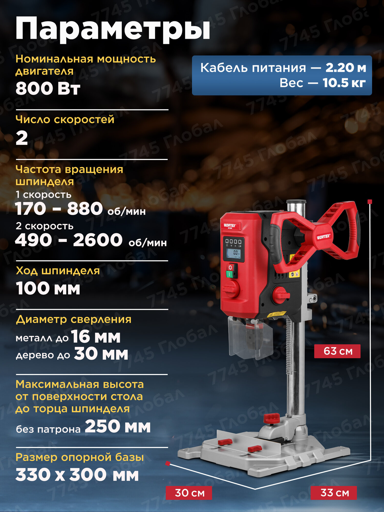 Станок сверлильный WORTEX DB 1305 (1318399) соответствует всем требованиям безопасности: электромагнитный выключатель, прозрачный экран для защиты оператора от стружки при сверлении. Двухступенчатый редуктор с электронной регулировкой частоты вращения шпинделя позволяет подобрать оптимальные режимы для обрабатываемого материала. Константная электроника позволяет работать под нагрузкой с заданной стабильной скоростью. Быстрозажимной патрон обеспечивает удобство и комфорт при работе. Электронный дисплей предоставляет информацию о текущей скорости и глубине сверления во время эксплуатации. Надежные быстрозажимные тиски позволяют прочно закрепить заготовку, обеспечив хорошее качество отверстий. Лазерный указатель позволяет зафиксировать точку вхождения сверла в материал для достижения точного результата. Данная модель оснащена LED-подсветкой рабочей зоны.