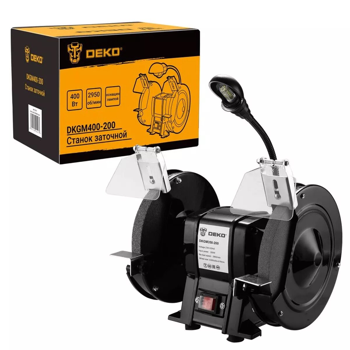 Станок заточной DEKO DKGM400-200 используется для заточки и шлифования инструмента. Модель отличается небольшими габаритами, что существенно облегчает его транспортировку. Шлифовальные диски закрыты защитными кожухами, которые обеспечивают безопасность оператора. Модель оснащена лампой для удобства работы оператора. Технические характеристики: Напряжение: 230 В Частота: 50 Гц Мощность: 400 Вт Номинальная частота вращения рабочего шпинделя на холостом ходу: 2950 об/мин Размер заточного круга: 200*20*16 мм Инструмент поставляется в частично разобранном виде: заточной станок - 1шт, защитный кожух - 2шт (каждый состоит из 2-х деталей), металлический упор - 2шт, крепежный комплект - 1 шт (6 винтов, 16 гаек). В комплекте руководство по эксплуатации. Высота, мм: 280,00 Длина, мм: 340,00 Ширина, мм: 260,00 Вес брутто, кг: 9,30 Подсветка: Да Скорость холостого хода, об/мин: 2950,00 Тип двигателя: асинхронный Посадочный диаметр, мм: 16,00 Напряжение питания, В: 230 Гарантия: 1 Модель: DKGM400-200 Вес нетто, кг: 8,50 Мощность, Вт: 400,00.