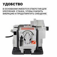 Компактная, производительная, простая в эксплуатации модель пригодится в быту, на даче, в мастерских, других местах, где есть необходимость частой заточки рабочих инструментов, ножей, ножниц. Она заменит ручной труд, ускорит процесс подготовки лезвий к работе.