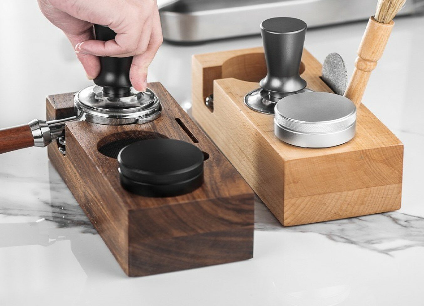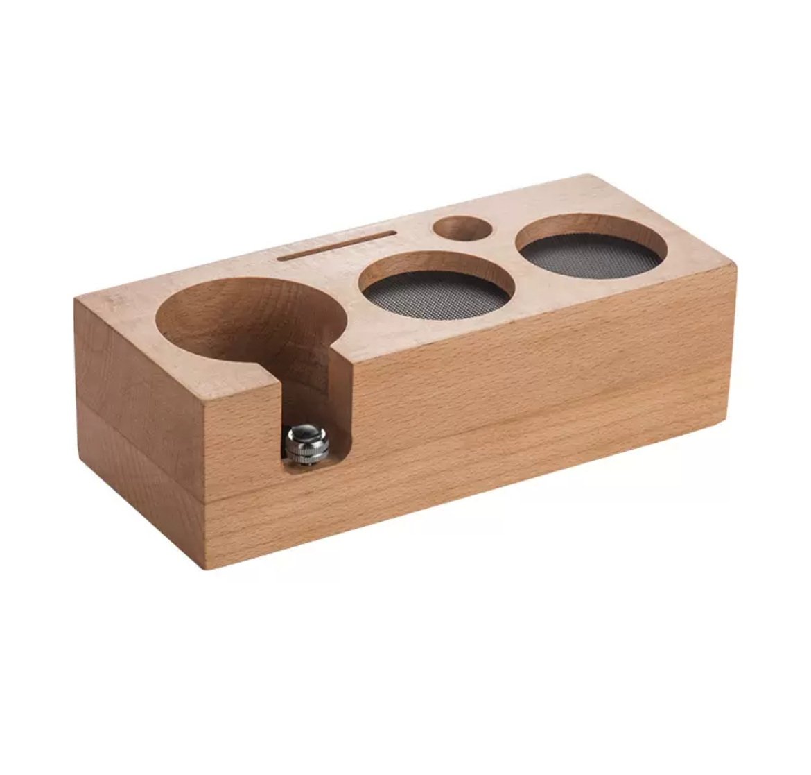 Станция для темпера деревянная - это идеальное решение для хранения кофейных аксессуаров и инструментов для темперовки кофе. Этот универсальный органайзер представляет собой компактную подставку, на которой можно разместить различные предметы, такие как темперы, разравниватель и другие необходимые аксессуары.