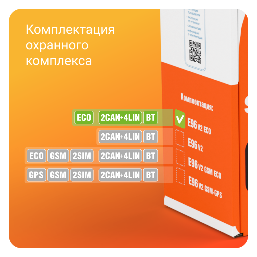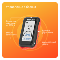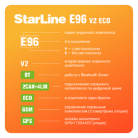 StarLine E96 V2 BT 2CAN+4LIN ECO — надежная автосигнализация c автозапуском, несканируемым диалоговым кодом, 2CAN+4LIN интерфейсом, Bluetooth Smart интерфейсом, 3D датчиком удара/наклона/движения, помехозащищенным трансивером, турботаймером и брелком с ЖК-дисплеем.