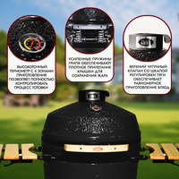 Гриль выполнен из толстостенной керамики и прост в использовании, потребуется совсем немного времени, чтобы подготовить его к работе и начать готовить настоящие кулинарные шедевры.