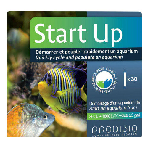 В одной упаковке START UP содержится две добавки: сочетание мощного эффекта BIO DIGEST и высокой эффективности STOP AMMO помогает быстрее запускать как пресноводные, так и морские аквариумы. STOP AMMO - натуральный продукт, состоящий из растительных экстрактов. Он нейтрализует аммиак, выделяющийся при запуске аквариума, и снижает продукцию нитритов. В то же время происходит размножение содержащихся в BIO DIGEST бактерий и налаживание биологической фильтрации. BIO DIGEST - высокотехнологичный бактериальный препарат. Содержащийся в 1 ампуле 30 миллиардов бактерий, в том числе нитрифицирующие бактерии, ускоряют налаживание процесса биологической фильтрации и позволяют быстрее запустить рыб. Кроме того, за счёт пищевой конкуренции эти бактерии избавляют от мутной воды, размножения паразитирующих микроорганизмов и снижают риск возникновения необъяснимых болезней рыб. Бактерии BIO DIGEST, находящиеся в заправленных азотом ампулах, сохраняют свою эффективность очень долго.