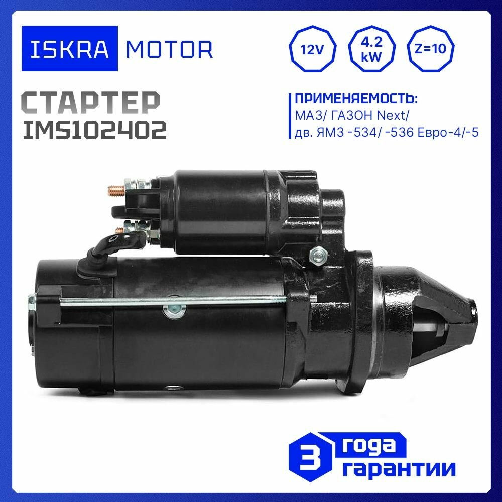 Купить Стартер 12V 4,2kW, z 10, Iskramotor IMS102402 для МАЗ, газон Next, ЯМЗ-534, -536, ЕВРО-4, аналоги 53403708010, AZF4209, AZF4383, MS 722, 11.132.402 с доставкой по всей России.