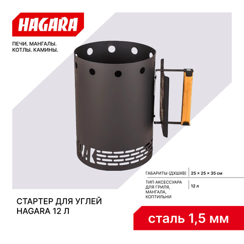 Стартер для углей Hagara изготовлен из качественного материала толщиной 1,5 мм, что обеспечивает его долговечность и надежность в использовании. Объем в 8 литров позволяет за раз закладывать достаточное количество угля для небольшого мангала, что делает процесс разжигания комфортным и эффективным.