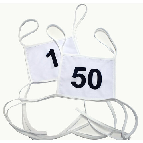 Купить Стартовые номера для соревнований, нагрудные номера с нумерацией, 50 шт. От 1 до 50. Размер 24х21 см с доставкой по всей России.
