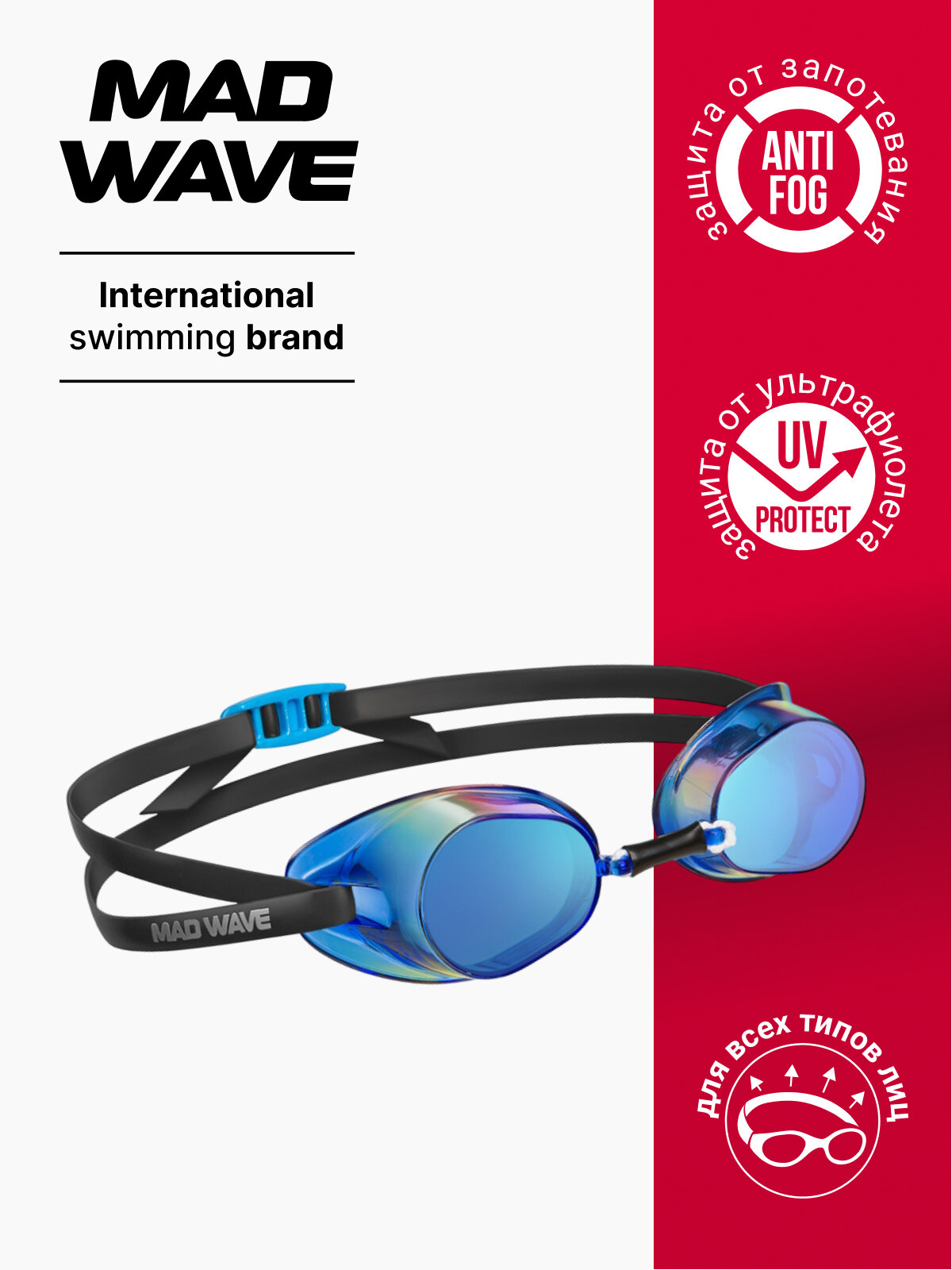 UV-фильтр, антифог-покрытие, для соревнований, для тренировок, зеркальное покрытие, прозрачные, регулируемая переносица, тонированные, футляр в комплекте