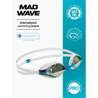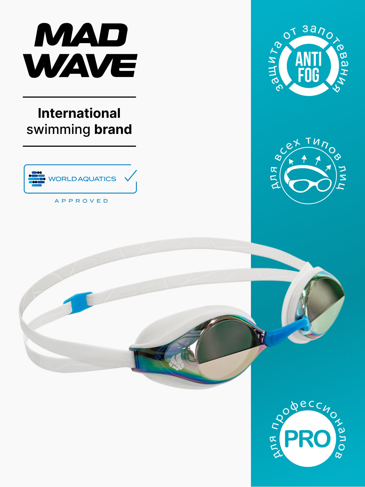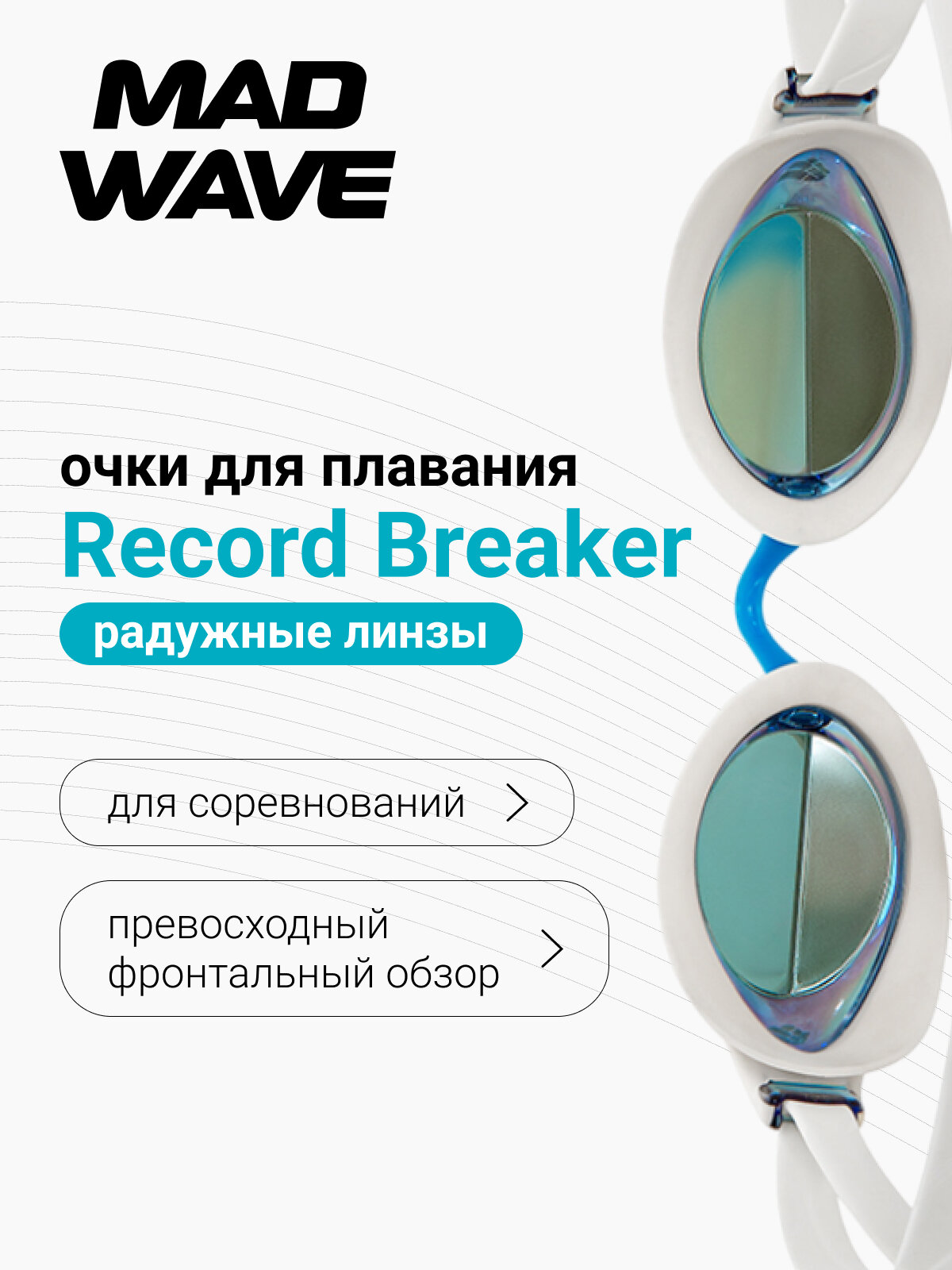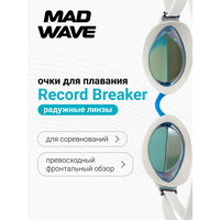 Разработанная специалистами Mad Wave инновационная конструкция линз Record breaker rainbow дает пловцам превосходный фронтальный обзор. Зеркальные линзы блокируют яркий свет и блики на воде. Очки сертифицированы федерацией World Aquatics и подходят для участия в международных соревнованиях.