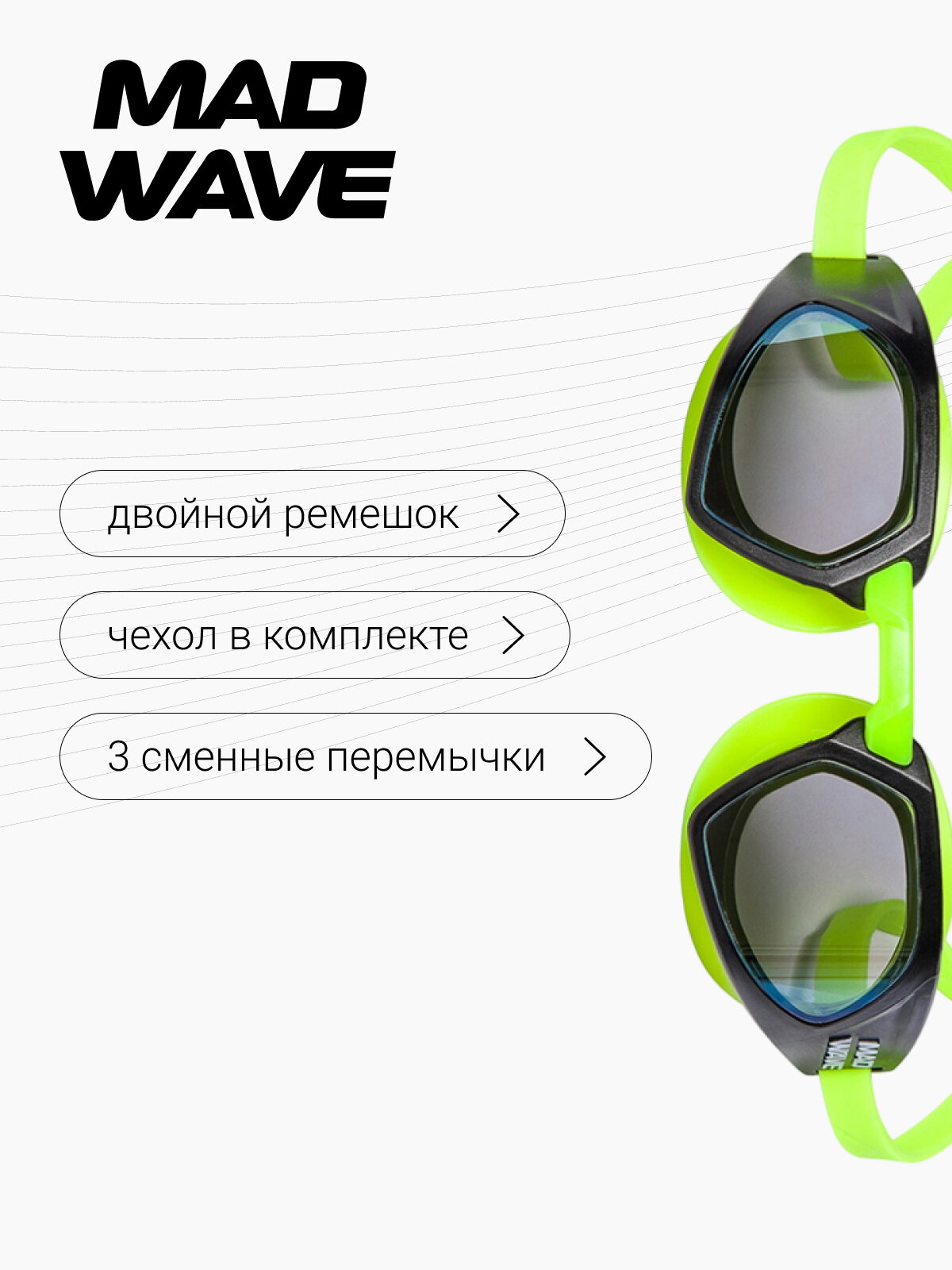 В комплекте к стартовым очкам для плавания идут три сменные носовые перемычки. С их помощью можно подогнать очки под индивидуальные особенности лица. Зеркальные линзы из поликарбоната с UV-защитой защищают глаза пловца от ультрафиолетового излучения. Покрытие от запотевания Антифог препятствует конденсации влаги на линзах и улучшает обзор.