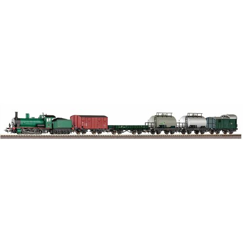 С наборами Piko вы перенесетесь во времени и сможете почувствовать себя полноценным машинистом железнодорожного состава. Дети, взрослые и, даже, заядлые любители коллекционных железнодорожных моделей найдут для себя много увлекательного, став обладателем уменьшенных копий паровозов, локомотивов, пассажирских и грузовых вагонов, выполненных с высочайшей скрупулезностью. Стартовый набор FS с тремя грузовыми вагонами. Паровоз SS 421 имеет белый обод на колесах.