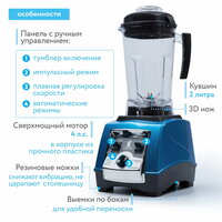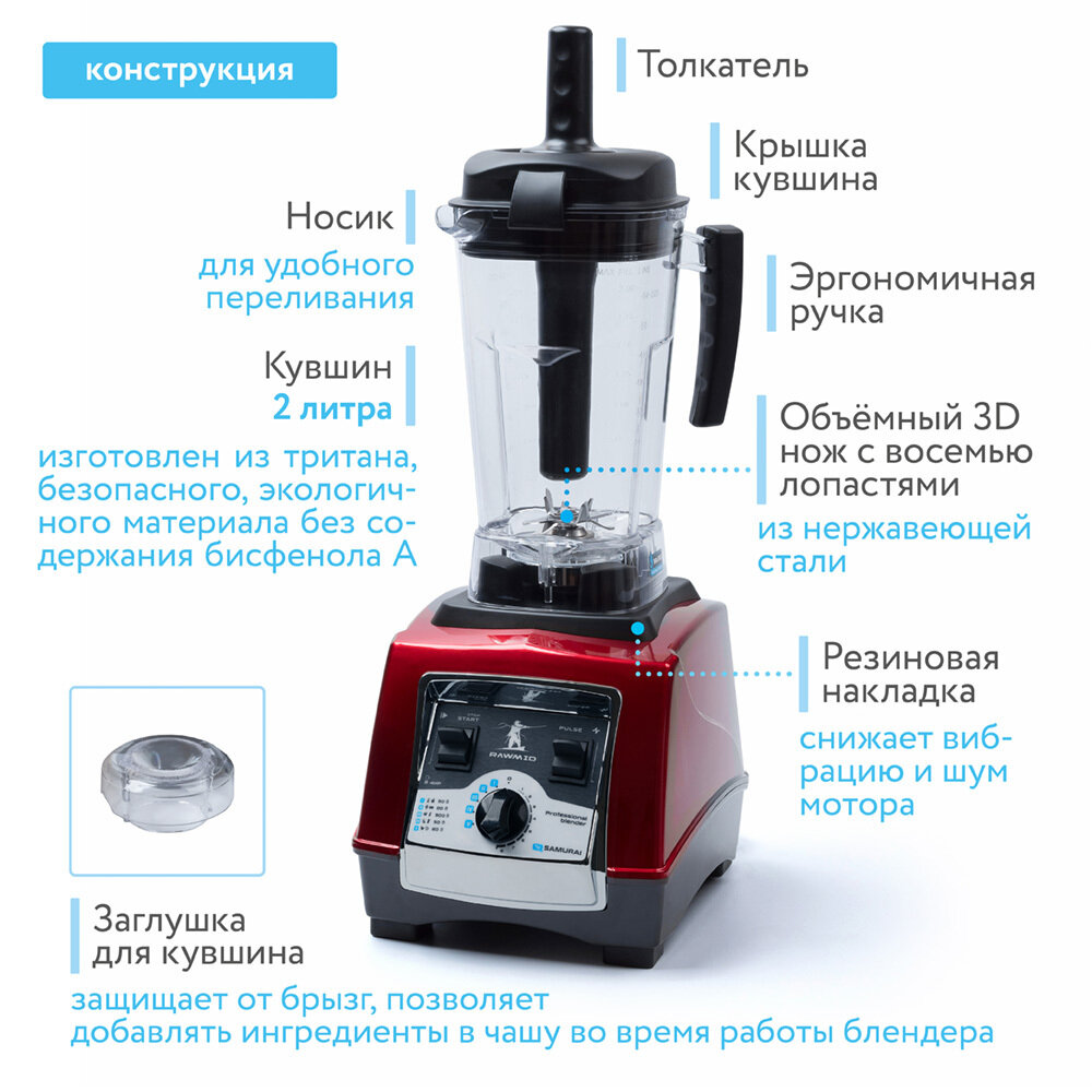 Профессиональный блендер Dream Samurai 4HP - это 4 лошадиные силы на кухонном столе. Идеален для баров и ресторанов, пригодится в любой семье. Нож с 4 зазубренными лезвиями, ребристая конструкция кувшина и 50.000 оборотов в минуту - из суммы многих факторов получается один из наиболее эффективных блендеров. Удобное и простое механическое управление с регулятором скорости, большая чаша на 2 литра, система защиты от перегрузок, шумоподавление и многое другое в профессиональном блендере Dream Samurai от RawMID. В лазурно-синем корпусе и других цветовых вариациях этот аппарат доступен в интернет-магазине Madeindream. com!
