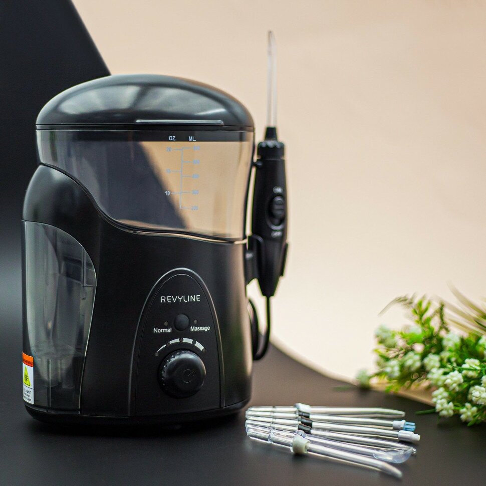 Ирригатор для зубов и десен Revyline RL 500 стационарный, черный, мощный, с насадками, с УФ-лампой, для всей семьи