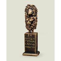 Награда выполнена в виде статуэтки, что делает ее не только функциональной, но и стильной. Она может стать украшением любого интерьера или стать частью коллекции.