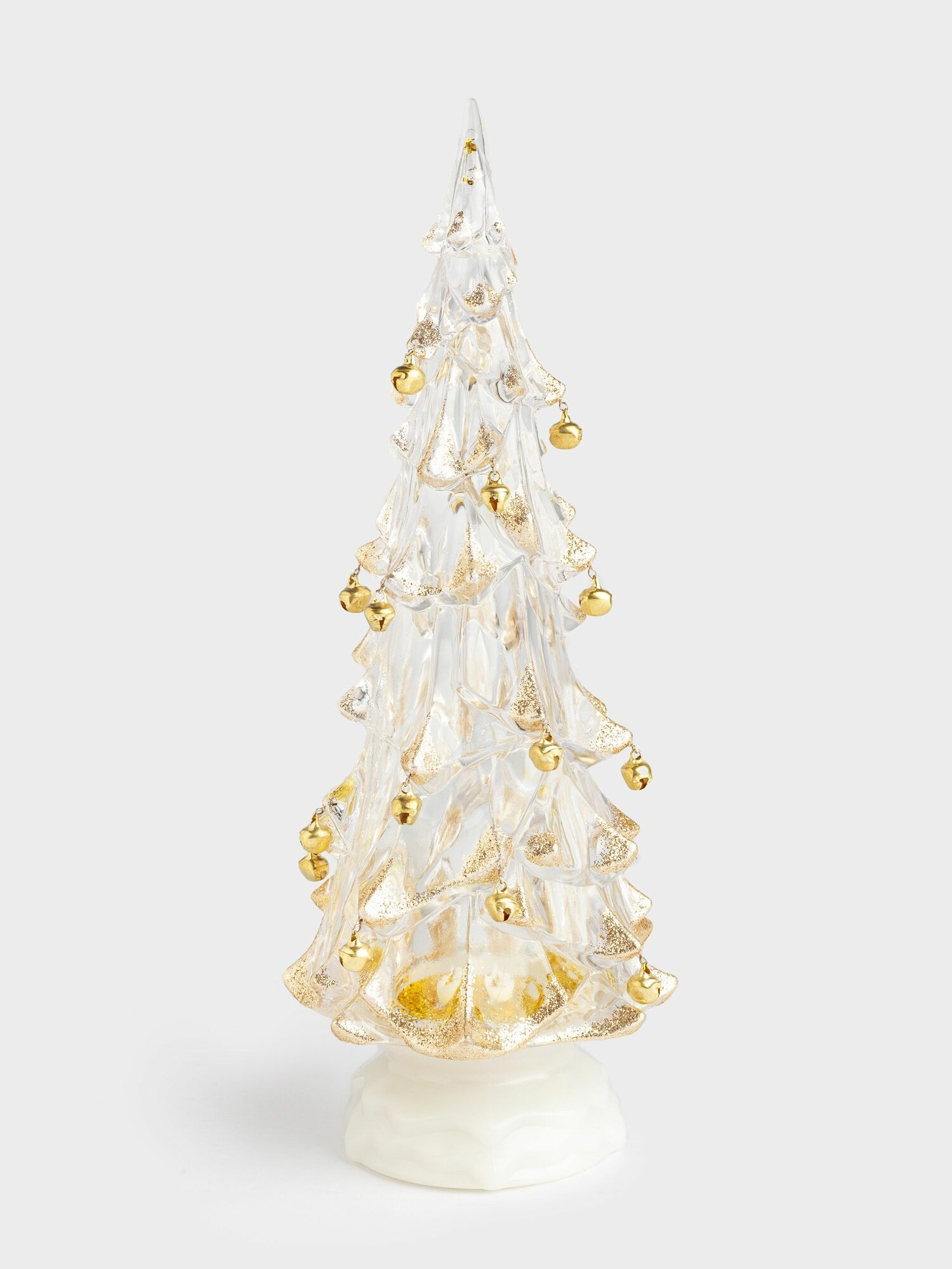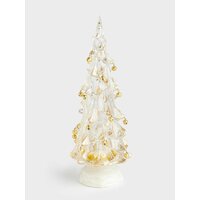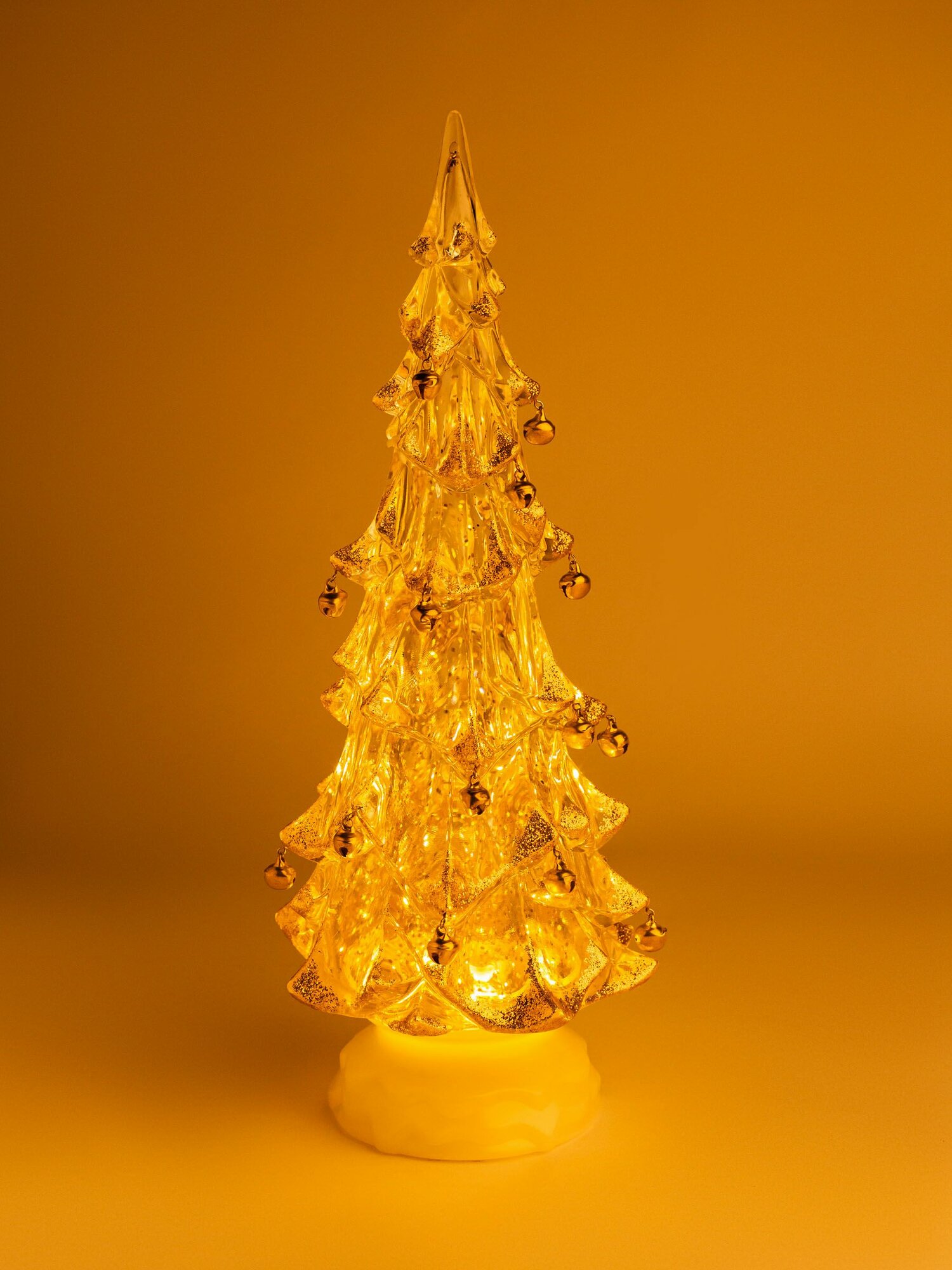 Купить Статуэтка с подсветкой, 32 см, акрил, бело-золотистая, Ель с летающим снегом, Golden style с доставкой по всей России.