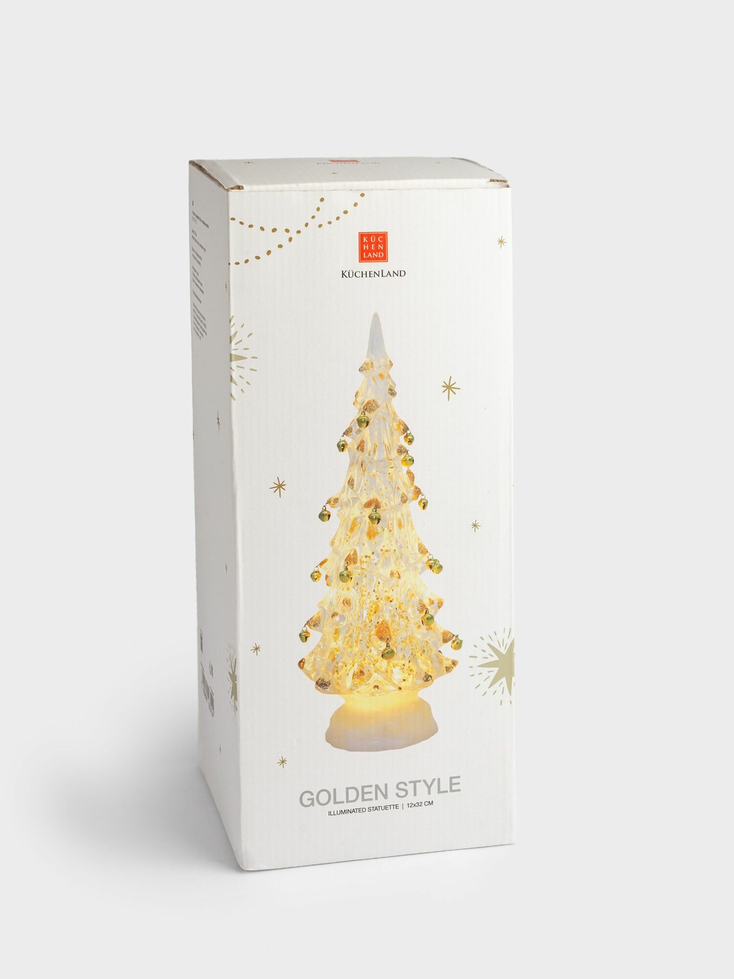 Статуэтка с подсветкой, 32 см, акрил, бело-золотистая, Ель с летающим снегом, Golden style: сравнение цен, характеристики, фото, актуальное наличие и цены.