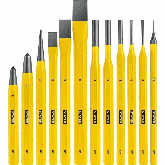 STAYER HERCULES набор зубил и кернеров, 12 предметов. Набор высококачественных зубил и кернеров. Преимущества Использование Для рубки или раскалывания различных материалов, накернивания насечек