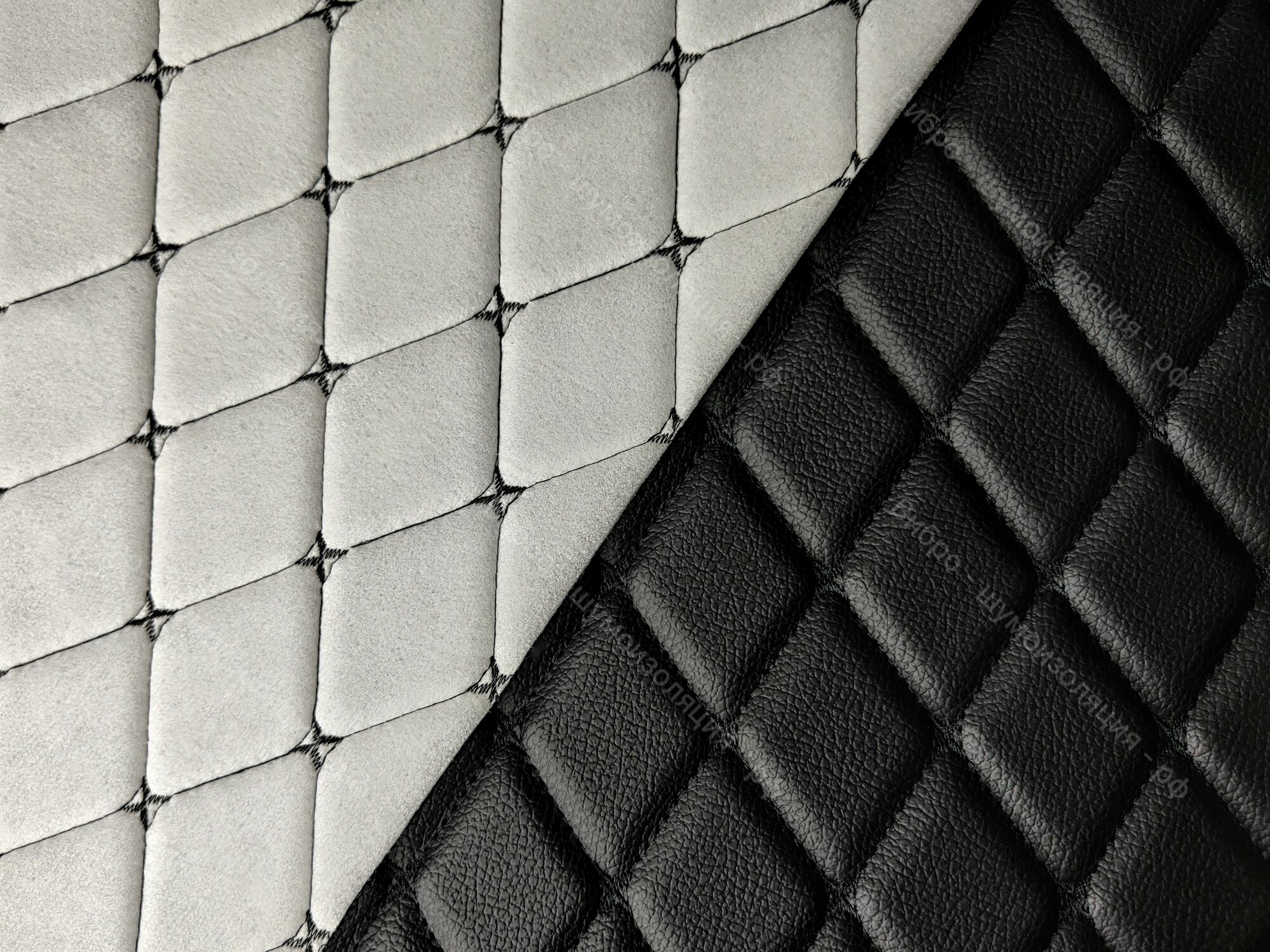 Купить Стеганая Экокожа Dakota без клеевого слоя — Черный Ромб — Черная нитка (100х140см) Простроченная — Прошитая экокожа + поролон 5мм + спанбонд. с доставкой по всей России.