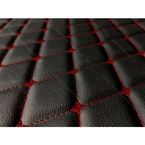 Купить Стеганая Экокожа Dakota без клеевого слоя — Черный Ромб — Красная нитка (500х140см) Простроченная — Прошитая экокожа + поролон 5мм + спанбонд. с доставкой по всей России.