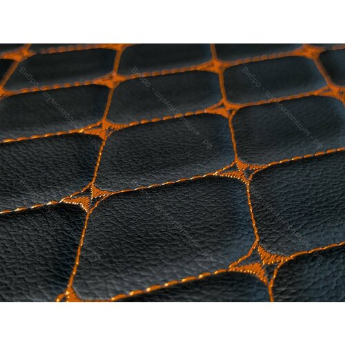 Стеганая Экокожа Dakota без клеевого слоя — Черный Ромб — Оранжевая нитка (500х140см) Простроченная — Прошитая экокожа + поролон 5мм + спанбонд.