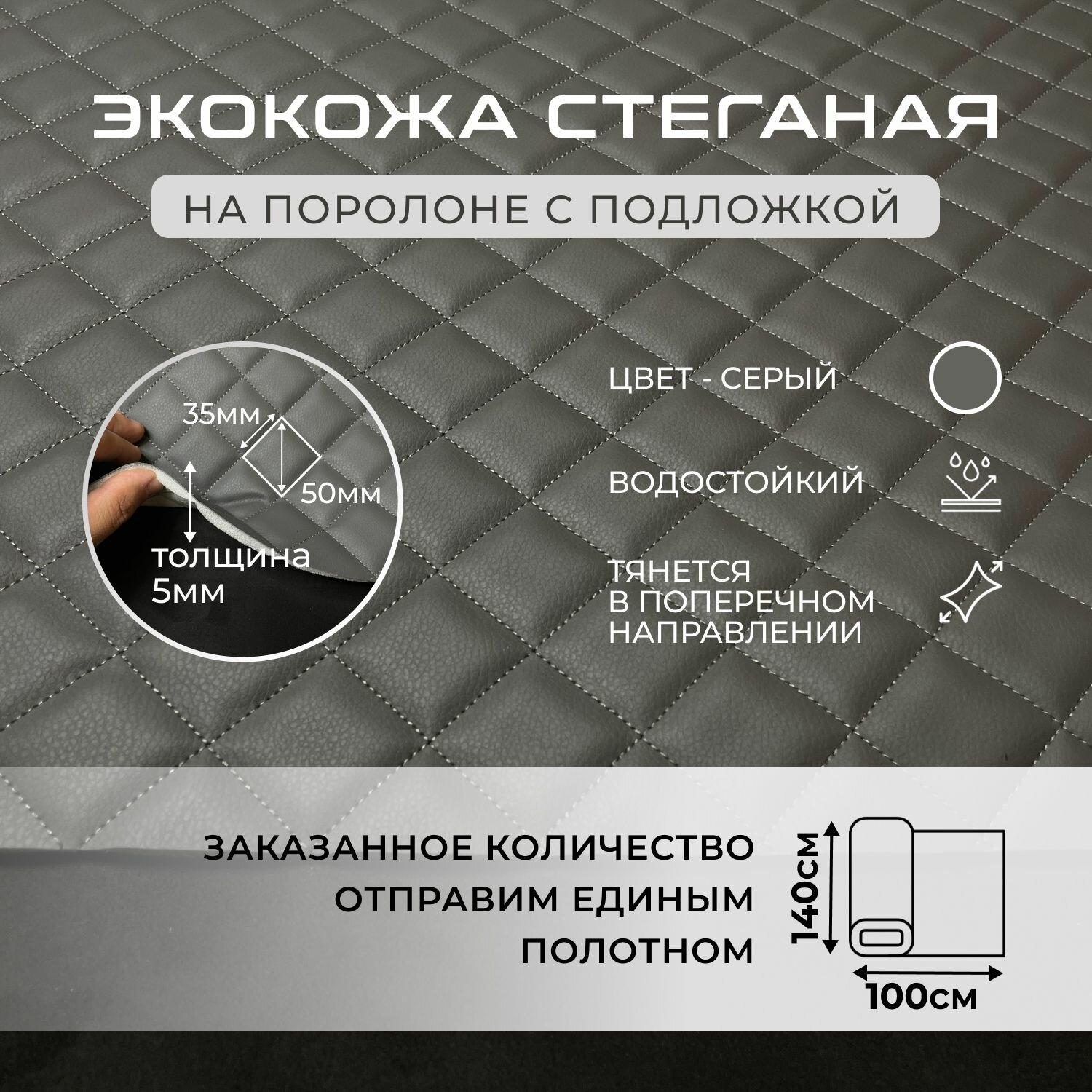 Купить Стеганая экокожа ромб серая С серой ниткой 100х140см с доставкой по всей России. Стеганая экокожа ромб серая С серой ниткой 100х140см: сравнение цен, характеристики, фото, актуальное наличие и цены.