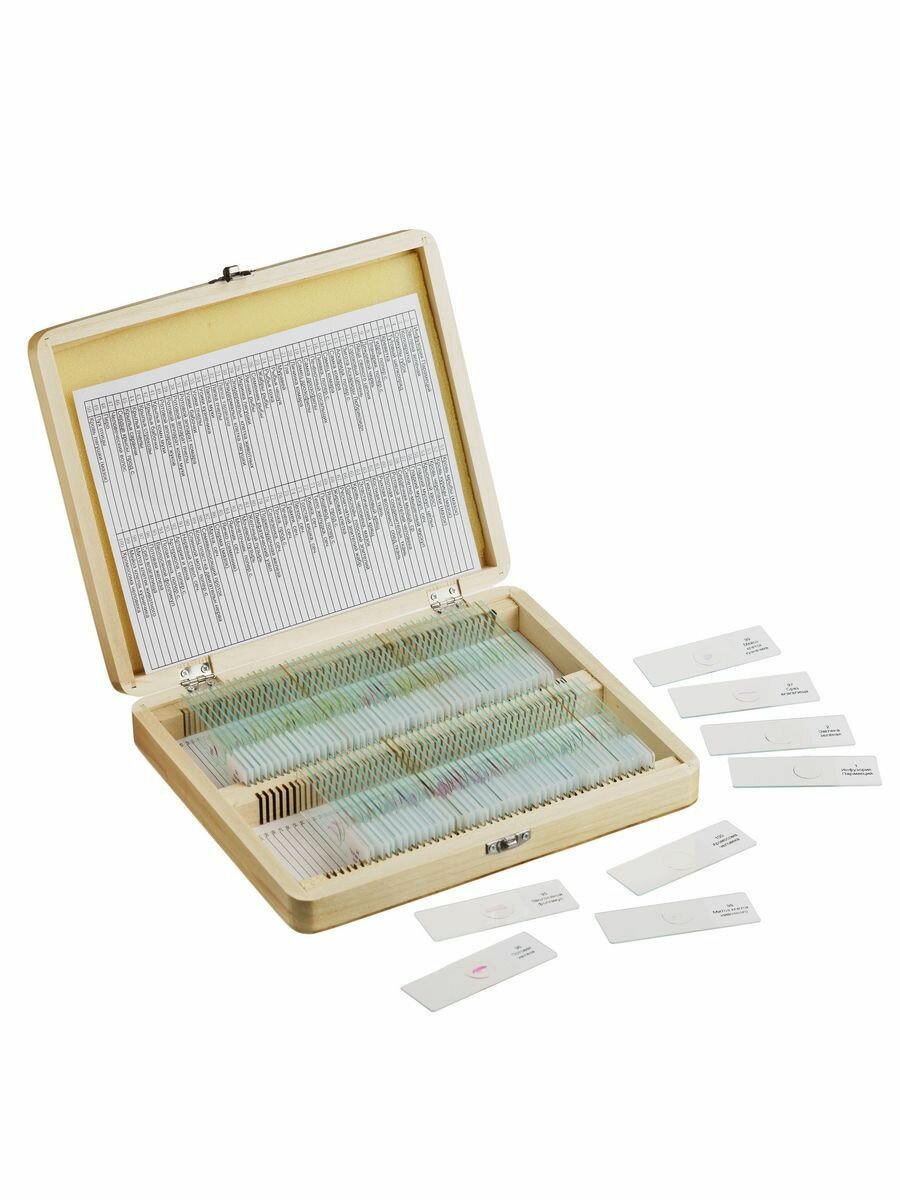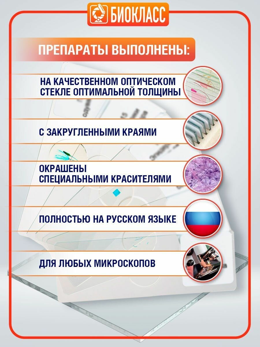 Премиум набор микропрепаратов для микроскопа, любителям и профессионалам микронаблюдений из 100 образцов высокого качества, выполненных на оптическом стекле с закругленными краями. Темы подарочного набора: анатомия, зоология. Этот набор предметных стекол содержит 100 готовых органических образцов, которые можно использовать сразу - поместите их под микроскоп, настройте яркость и резкость. Препараты для микроскопа качественно окрашены. Набор поставляется в подарочном пластиковом кейсе. Вы также можете дополнить свою покупку микроскопа или подарок любителю опытов и экспериментов в области биологии, чтобы приступить к наблюдениям в микроскоп непосредственно в новый год, день рождения или любой другой праздник. Школьник, студент, увлекающийся взрослый - набор поможет погрузиться в мир науки, и, возможно, произвести революционные открытия в области медицины в дальнейшем. Микрепрепараты подходят для подготовки к практическая работа по биологии, а также помогут повысить проходной балл в медицинские вузы.
