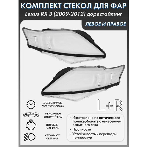 Купить Стекло фары для Lexus RX 3 (2009-2012) дорестайлинг комплект левое+правое, поликарбонат 01-039-LR с доставкой по всей России. Стекло фары для Lexus RX 3 (2009-2012) дорестайлинг комплект левое+правое, поликарбонат 01-039-LR: сравнение цен, характеристики, фото, актуальное наличие и цены.