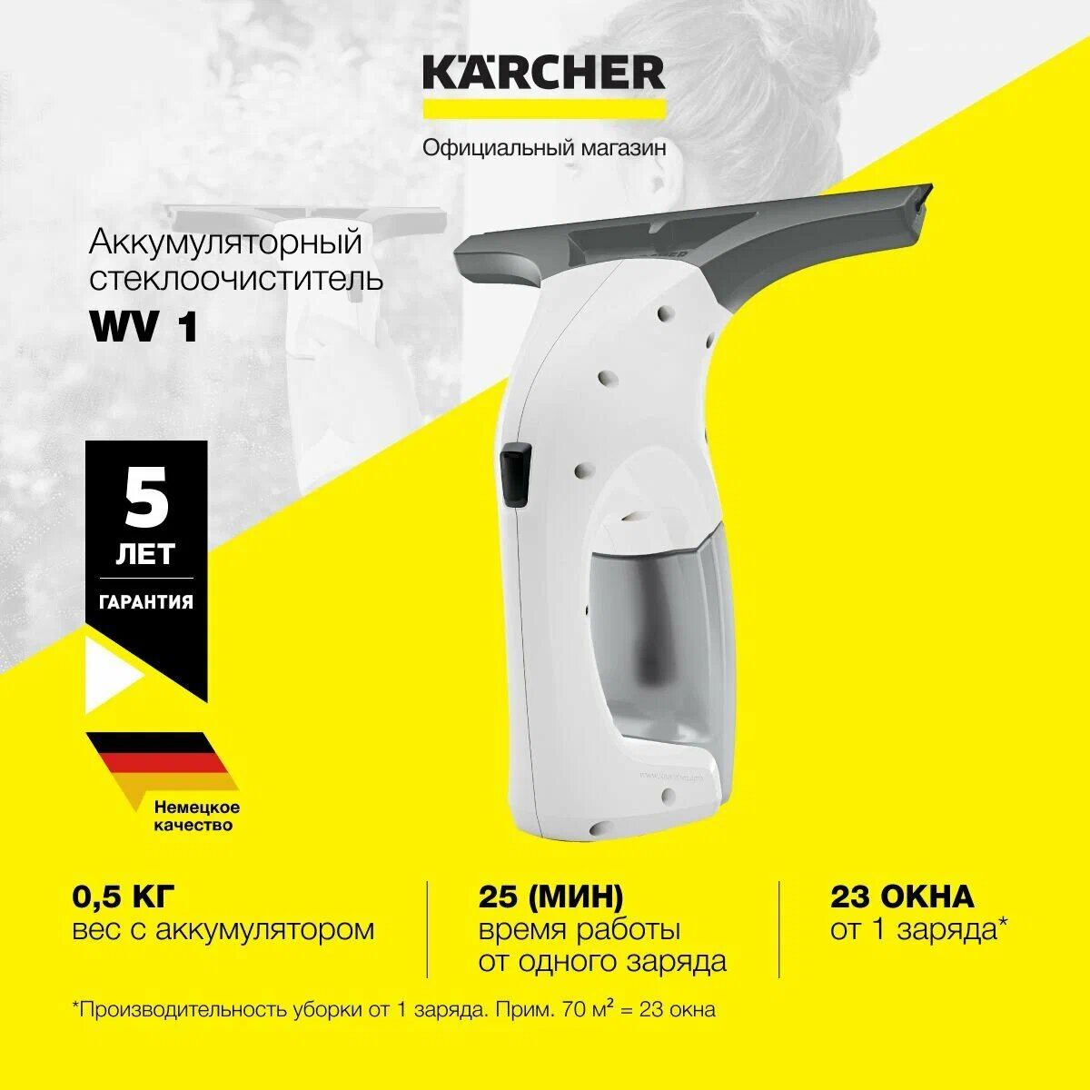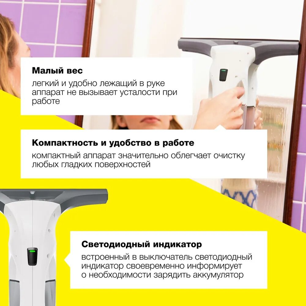 Стеклоочиститель аккумуляторный Karcher WV 1 Plus;1.633-601.0, время автономной работы до 25 мин, съемный бак для грязной воды 100 мл: сравнение цен, характеристики, фото, актуальное наличие и цены.