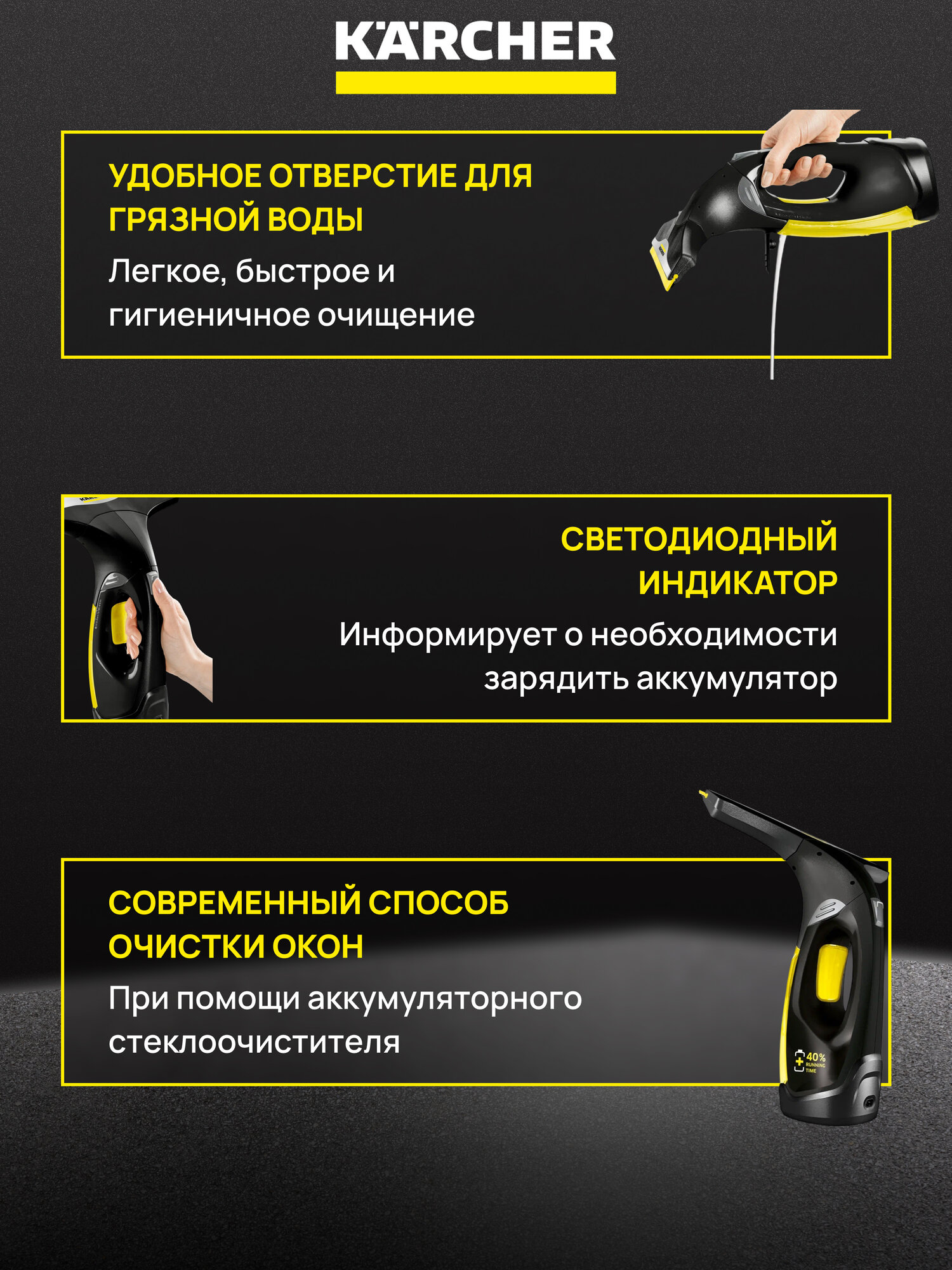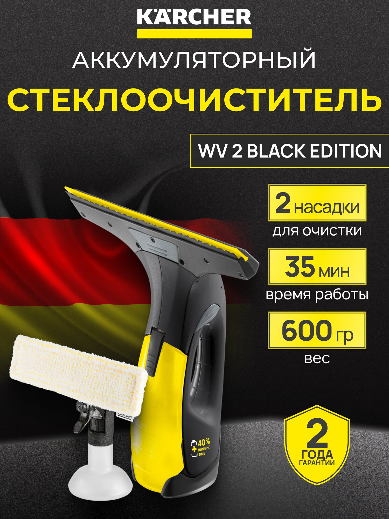 Стеклоочиститель, Karcher WV 2 Black Edition аккумуляторный для окон, 2 насадки, беспроводной ручной: сравнение цен, характеристики, фото, актуальное наличие и цены.