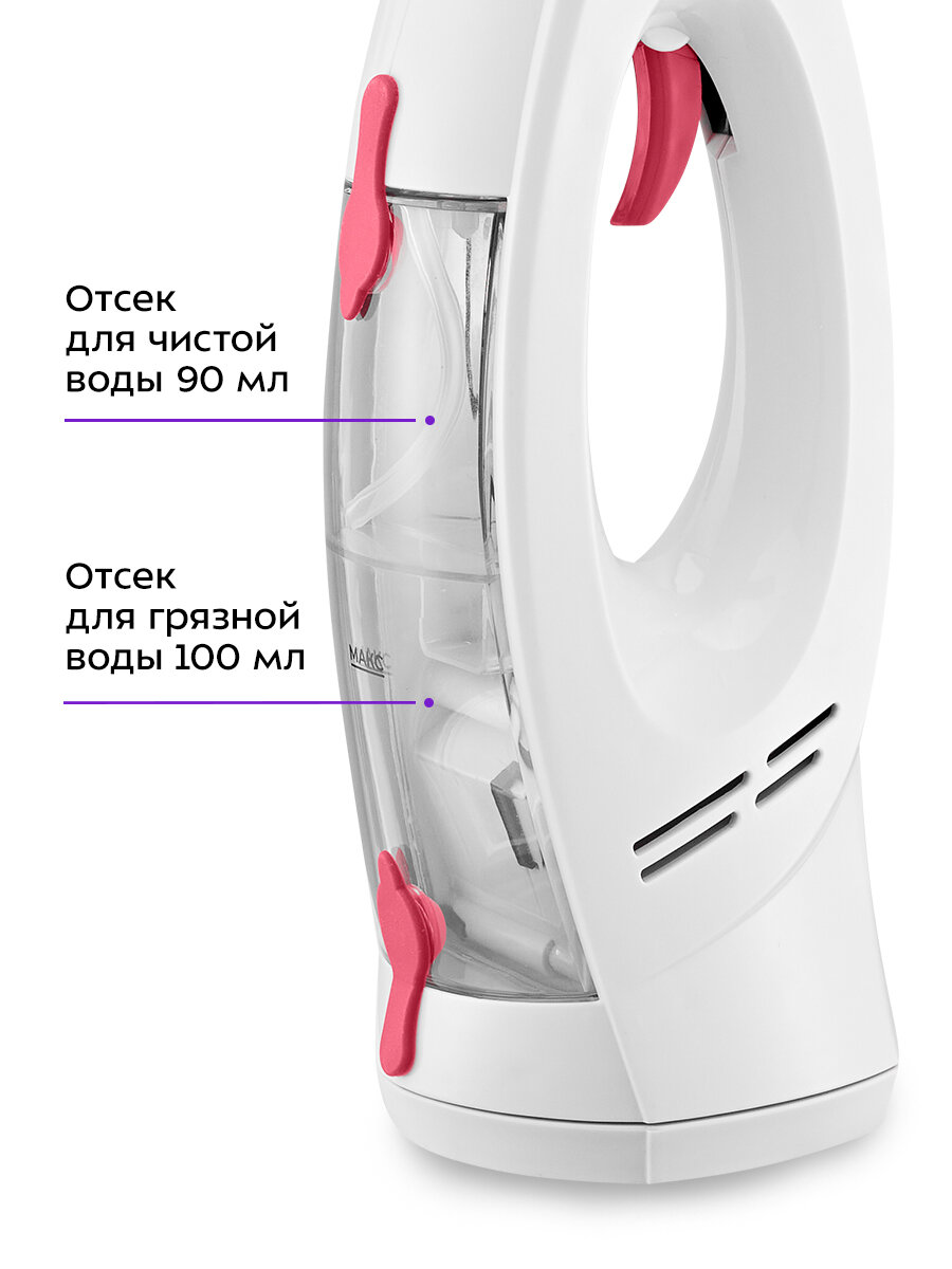 Чистота вашего стекла! Стеклоочиститель КТ-5269 — это прибор для мойки стёкол, зеркал, кафельных и пластиковых поверхностей. В корпус прибора встроен распылитель, который позволит вам быстро и удобно намочить водой очищаемую поверхность. Никаких разводов Помимо классического пластикового скребка в комплекте так же идёт ворсовая тряпка, которой вы можете довести очищаемую поверхность до скрипящего идеала. Хватит на всё! Резервуар для воды разделён на два отсека: для чистой воды и для грязной воды. Отсеки закрываются заглушками. Используйте фильтрованную кипячёную, деминерализованную или дистиллированную воду. Без проводов Благодаря работе от аккумулятора устройство имеет неограниченный радиус действия. Небольшие габариты и малый вес стеклоочистителя делают процесс уборки простым и удобным. Полный комплект Стеклоочиститель собирает влагу лучше, чем обычный скребок, и не оставляет подтёков от грязной воды, при этом не требуется использовать салфетки или полотенца. В комплекте к очистителю идут тряпка, скребок, мерный стаканчик и блок зарядки.