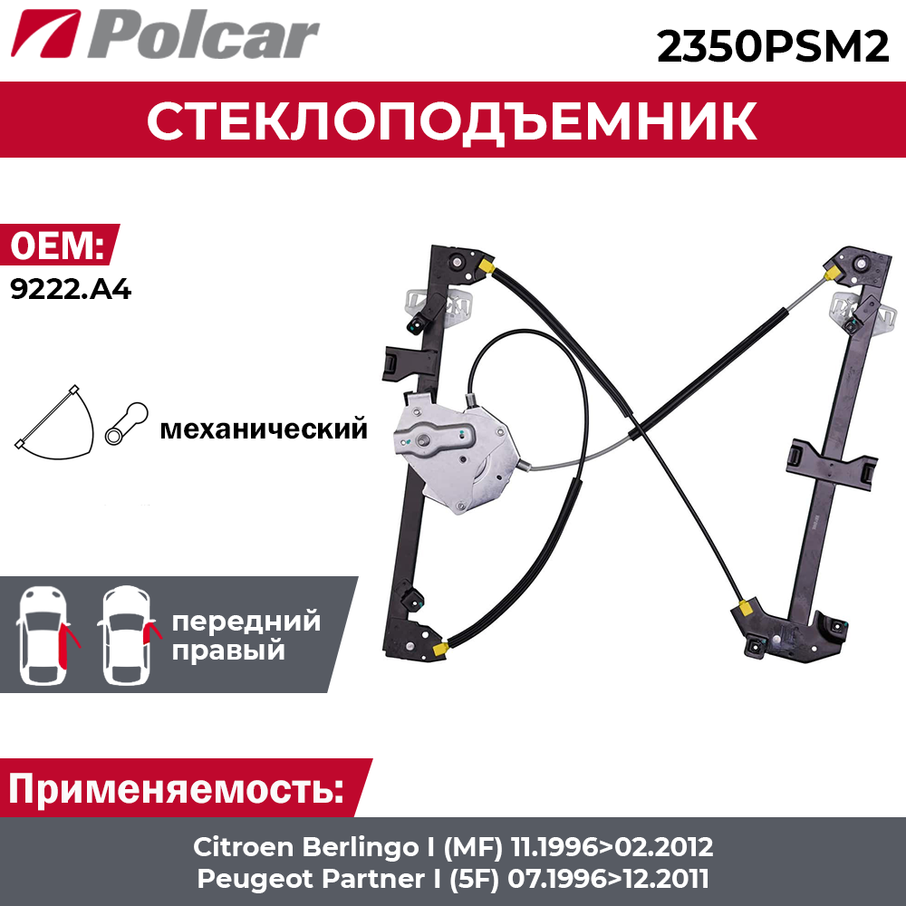 Купить Стеклоподъемник Peugeot Partner (5F) и Citroen Berlingo (MF) передний правый механический — Polcar с доставкой по всей России. Стеклоподъемник Peugeot Partner (5F) и Citroen Berlingo (MF) передний правый механический — Polcar: сравнение цен, характеристики, фото, актуальное наличие и цены.