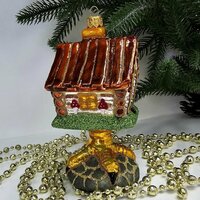 Игрушка выполнена из высококачественного стекла и представляет собой избушку, окруженную грибами. Ручная роспись добавляет изделиям неповторимый шарм и делает каждую игрушку настоящим произведением искусства.