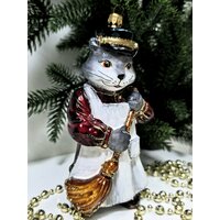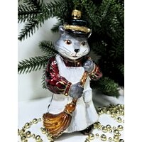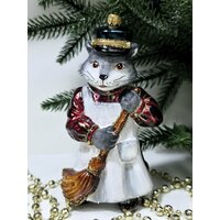 Купить Стеклянная елочная игрушка Котофей дворник с доставкой по всей России.