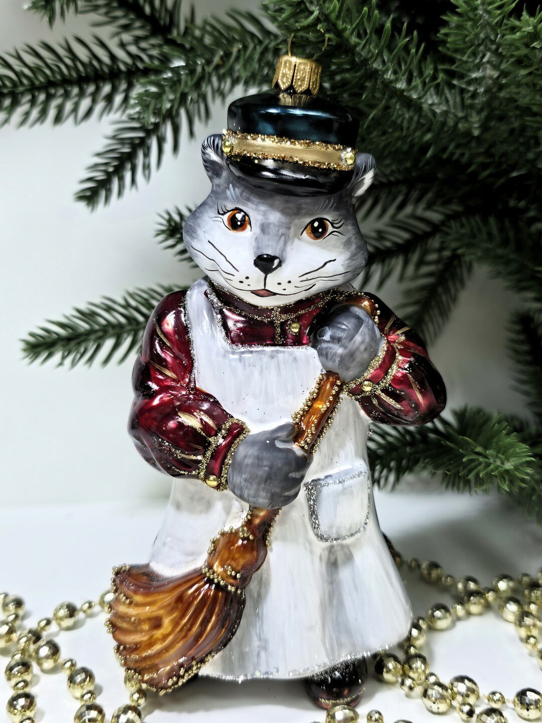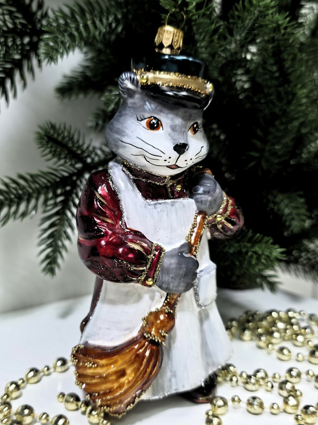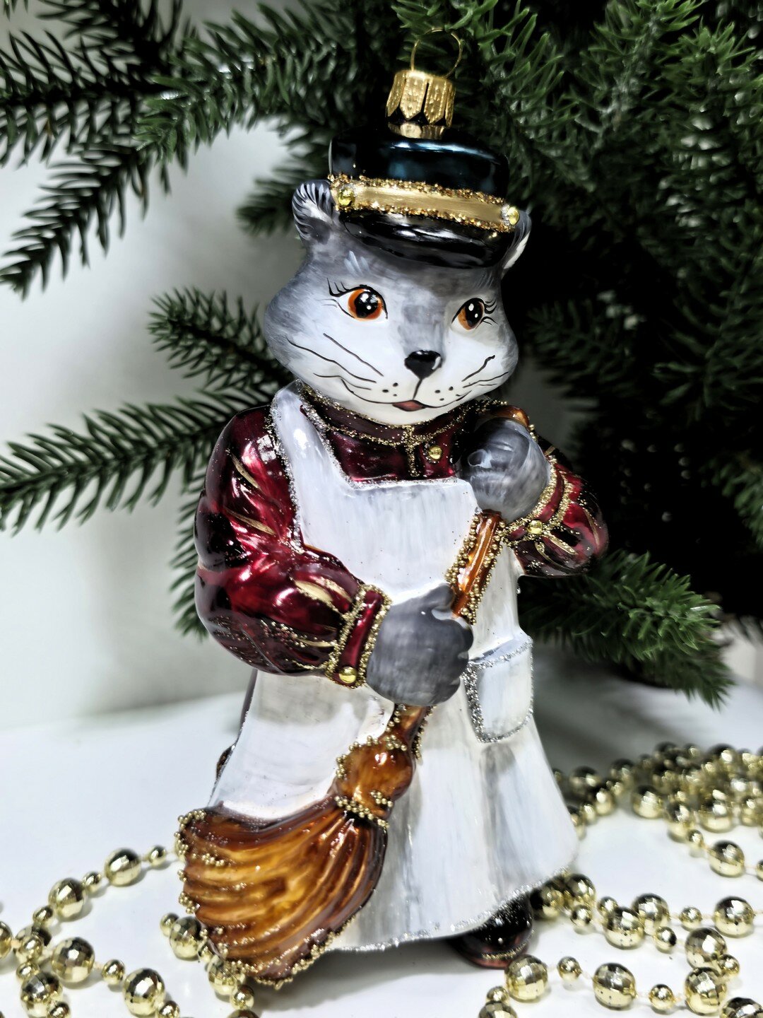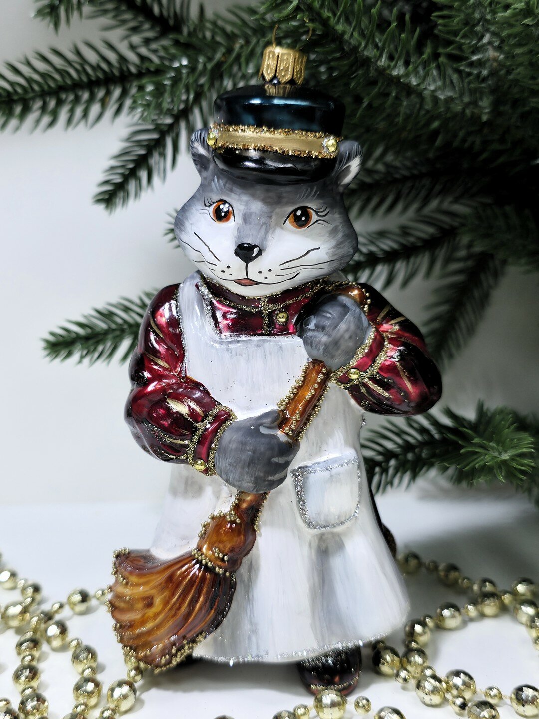 Стеклянная елочная игрушка Котофей дворник