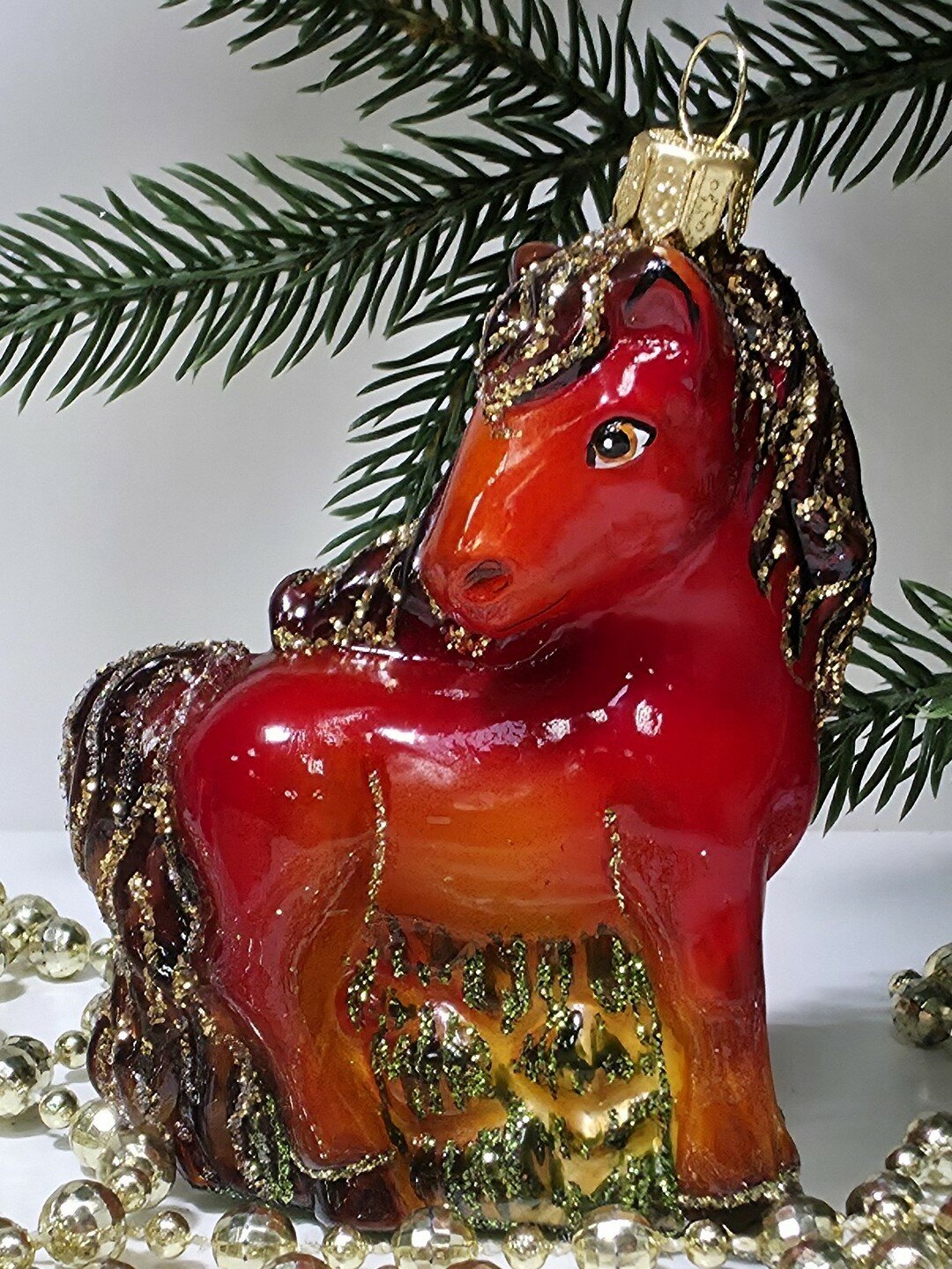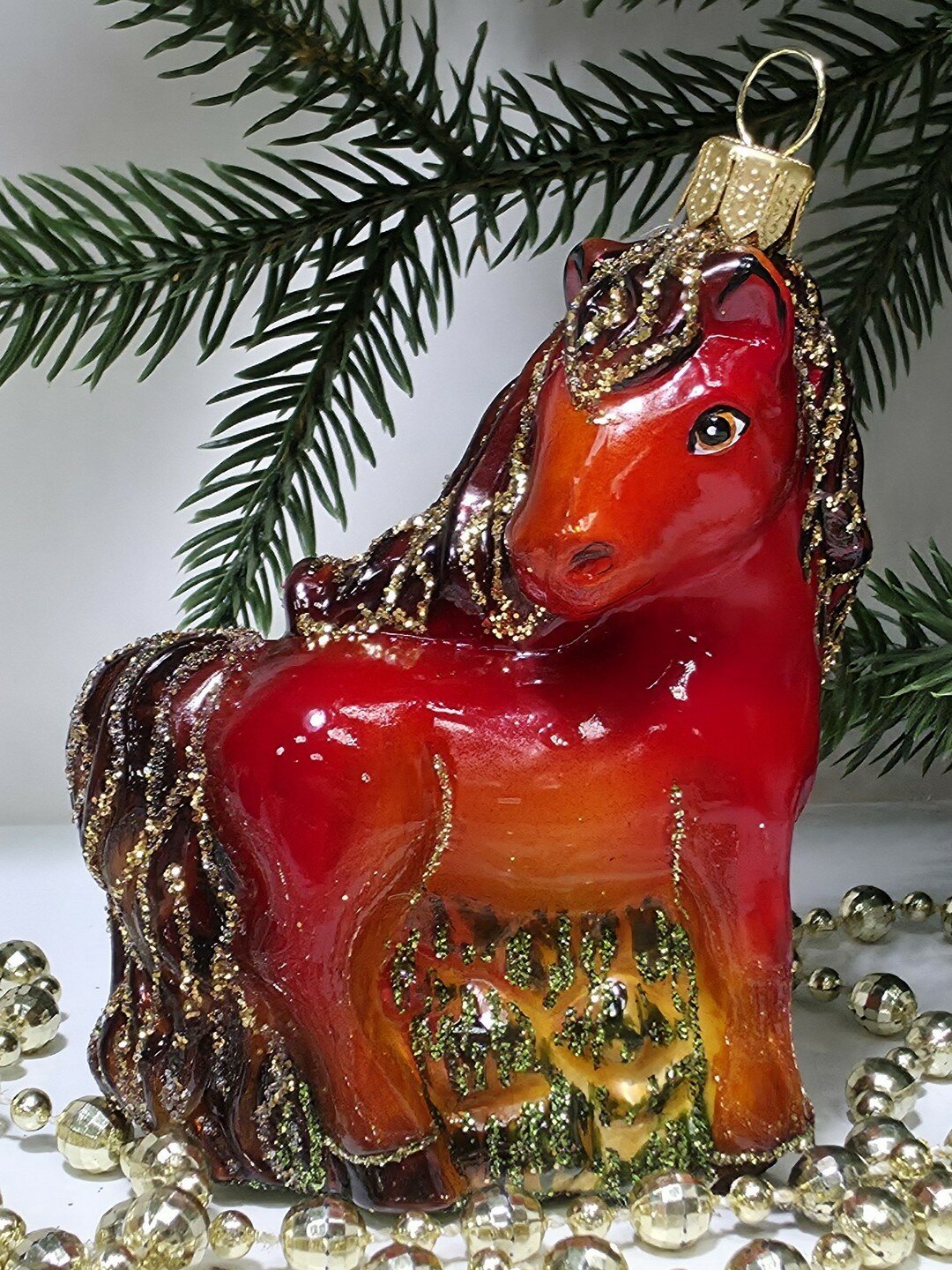 Стеклянная елочная игрушка Лошадка смотрит в бок