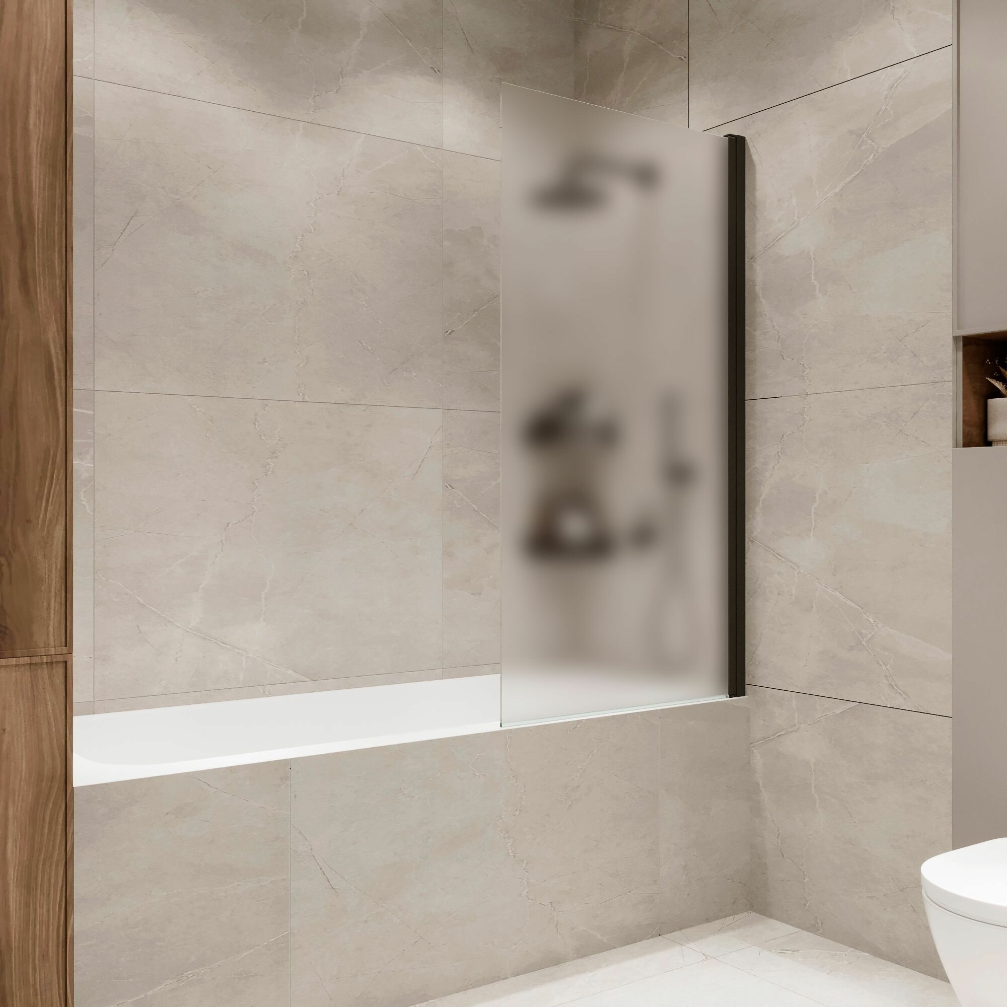 Купить Шторка на ванну MEBELVANN 145×70 см поворотная, черный профиль, матовое стекло с доставкой по всей России.