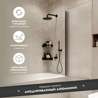 Шторка на ванну MEBELVANN 145×70 см поворотная, черный профиль, матовое стекло: сравнение цен, характеристики, фото, актуальное наличие и цены.