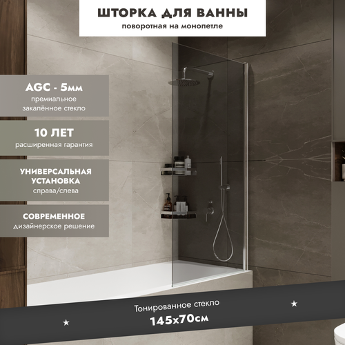 Шторка на ванну MEBELVANN 145×70 см поворотная, профиль хром, тонированное стекло: сравнение цен, характеристики, фото, актуальное наличие и цены.
